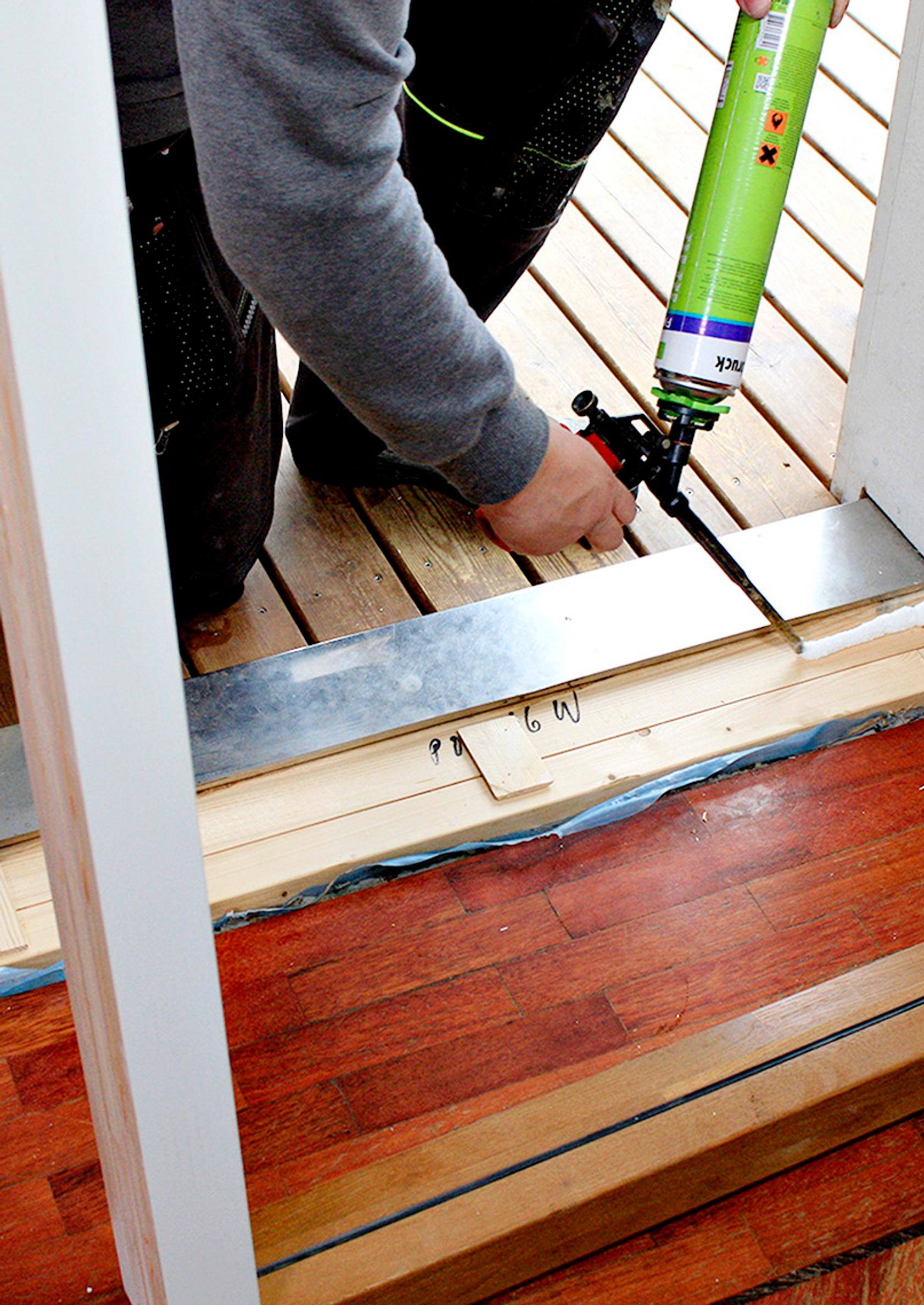 8. Pursota vähän uretaania kynnyksen alle ja nosta se paikoilleen.