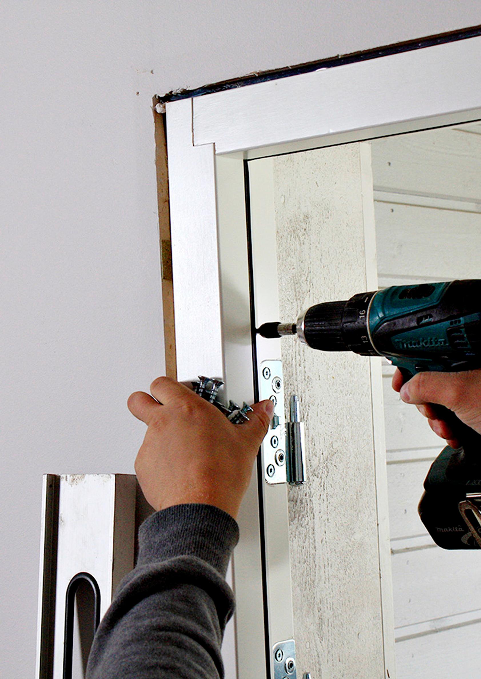 12. Nosta uusi ovi paikoilleen ja varmista sen istuvuus.