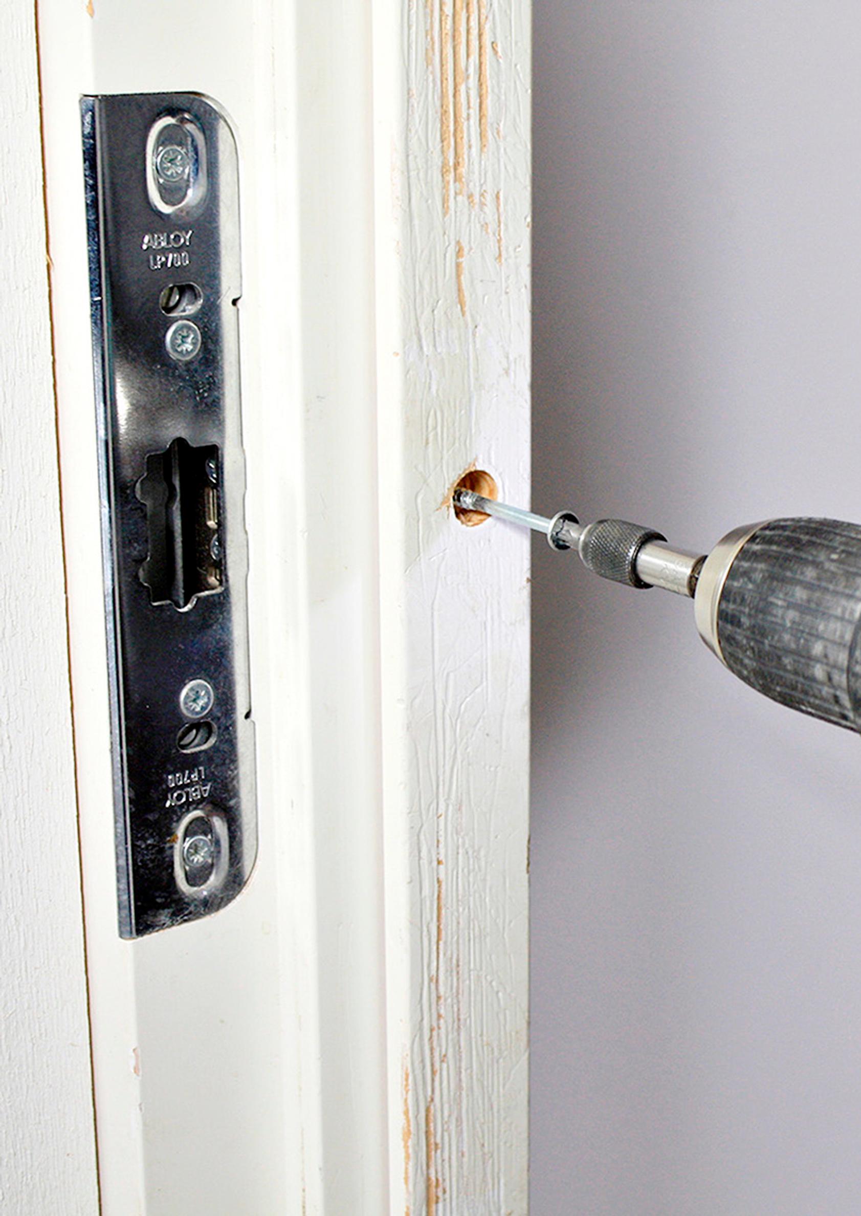 1. Irrota vanha ovilehti ja kierrä karmiruuvit auki.
