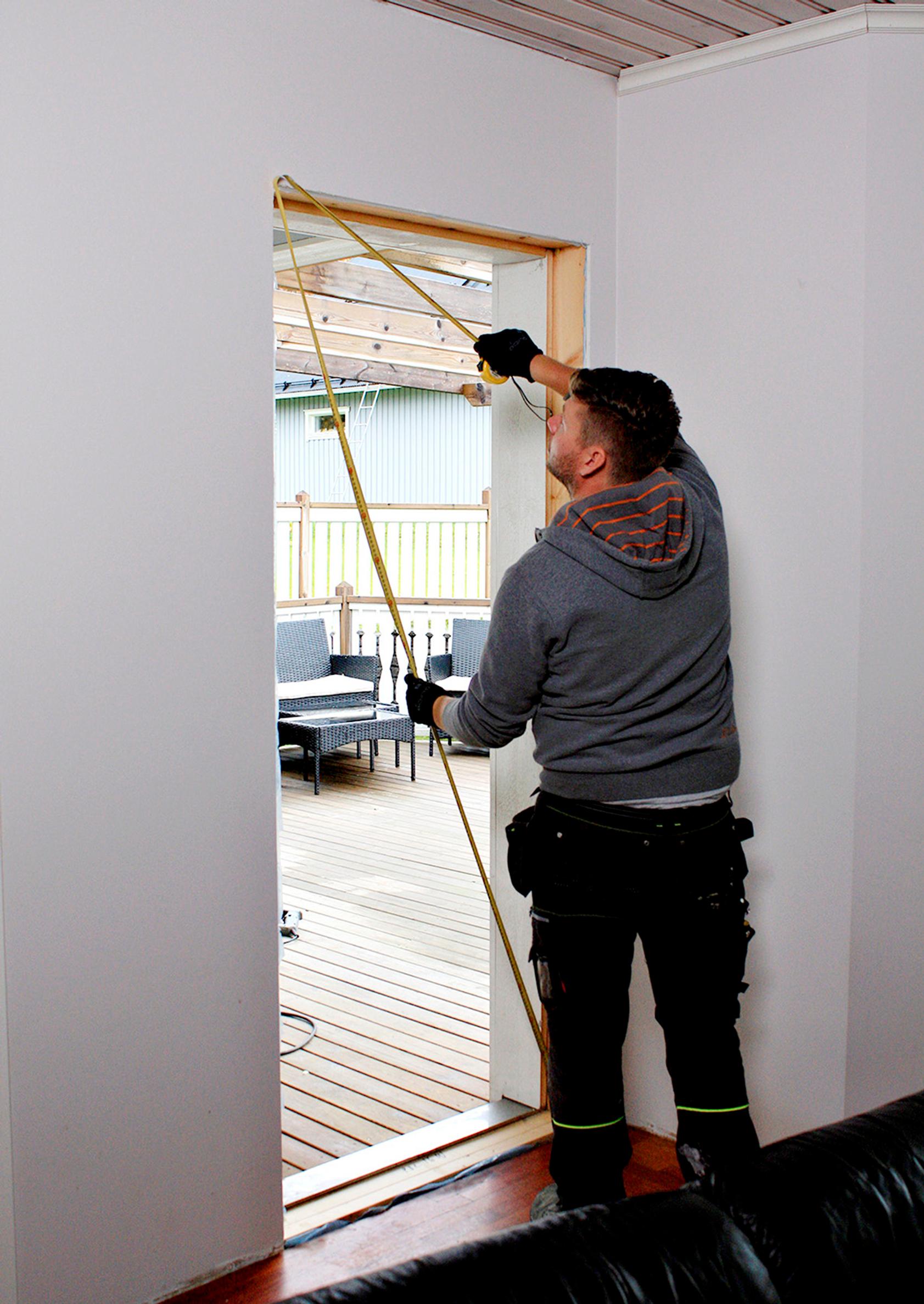 3. Puhdista oviaukko uretaaneista ja mittaa aukko, myös ristimitta.
