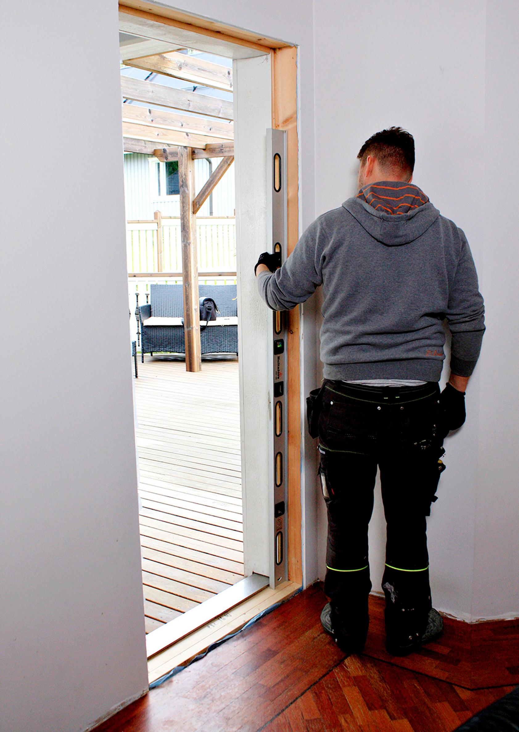 11. Tarkista vielä kerran, että karmi on joka puolelle suorassa.