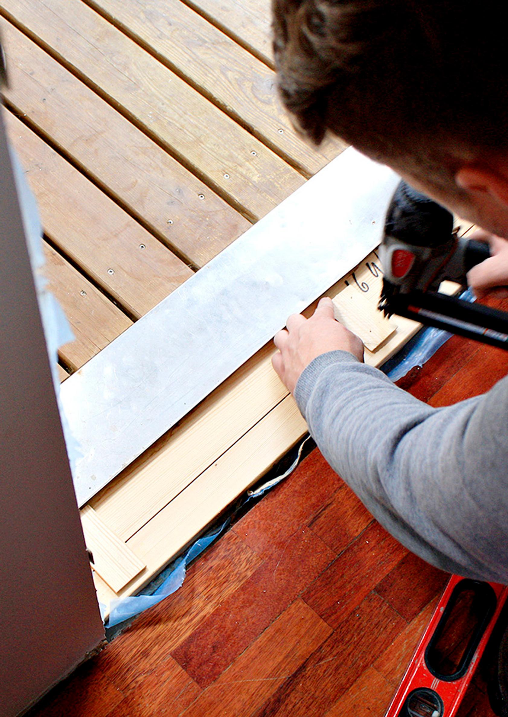 6. Nosta pienillä korokkeilla kynnys vaakasuoraan ja paikoilleen.