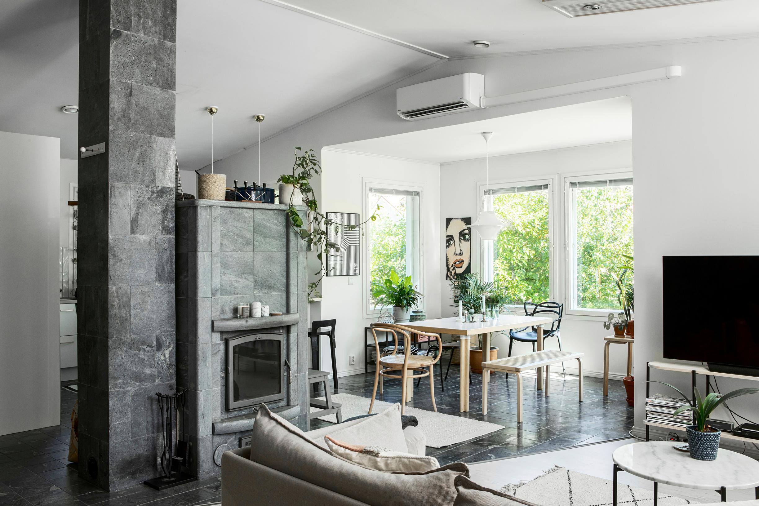 – Meillä on vesikiertoinen lattialämmitys. Kivi on talvella lämmin ja kesällä miellyttävän viileä, kun lämmitys ei ole päällä.