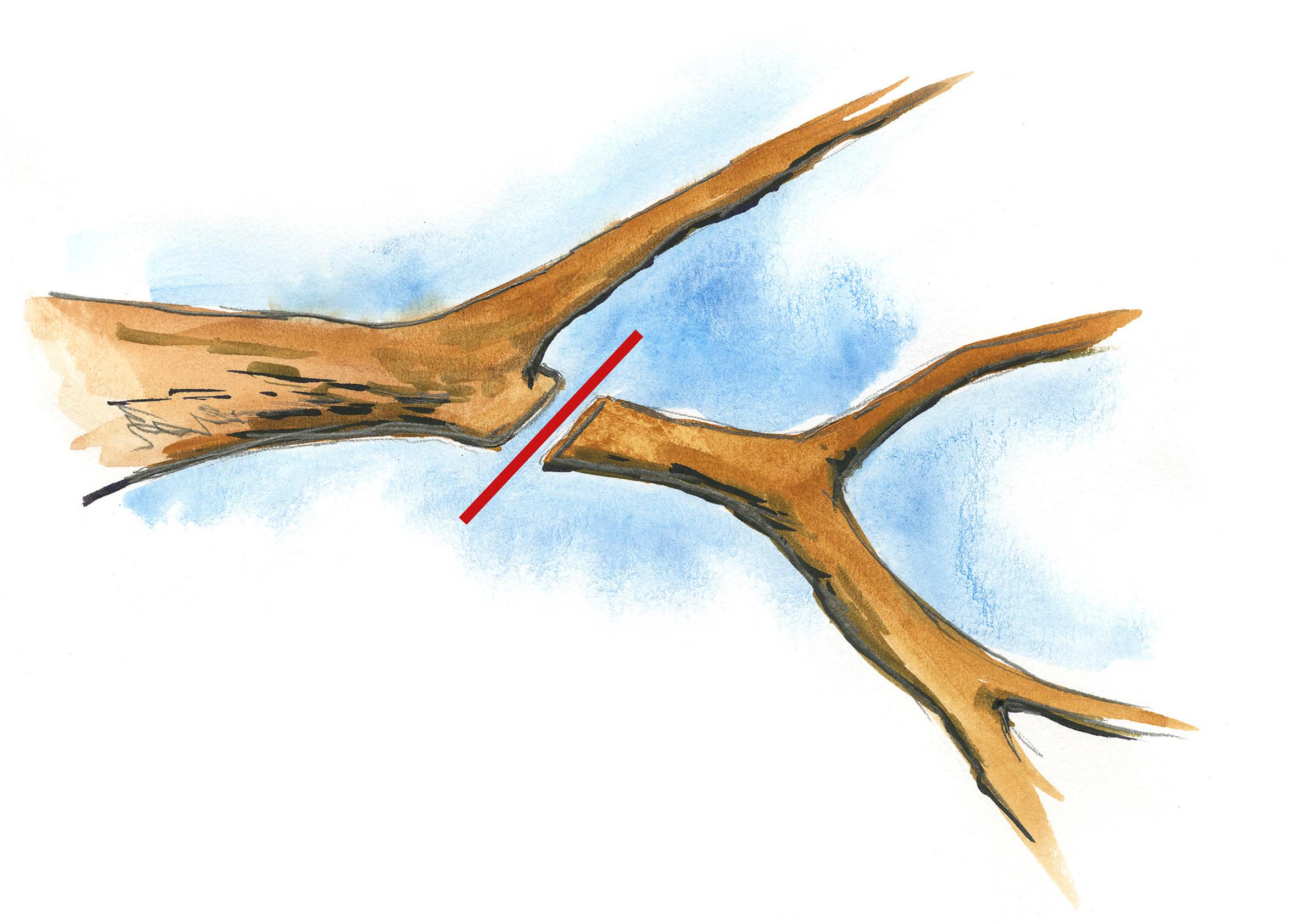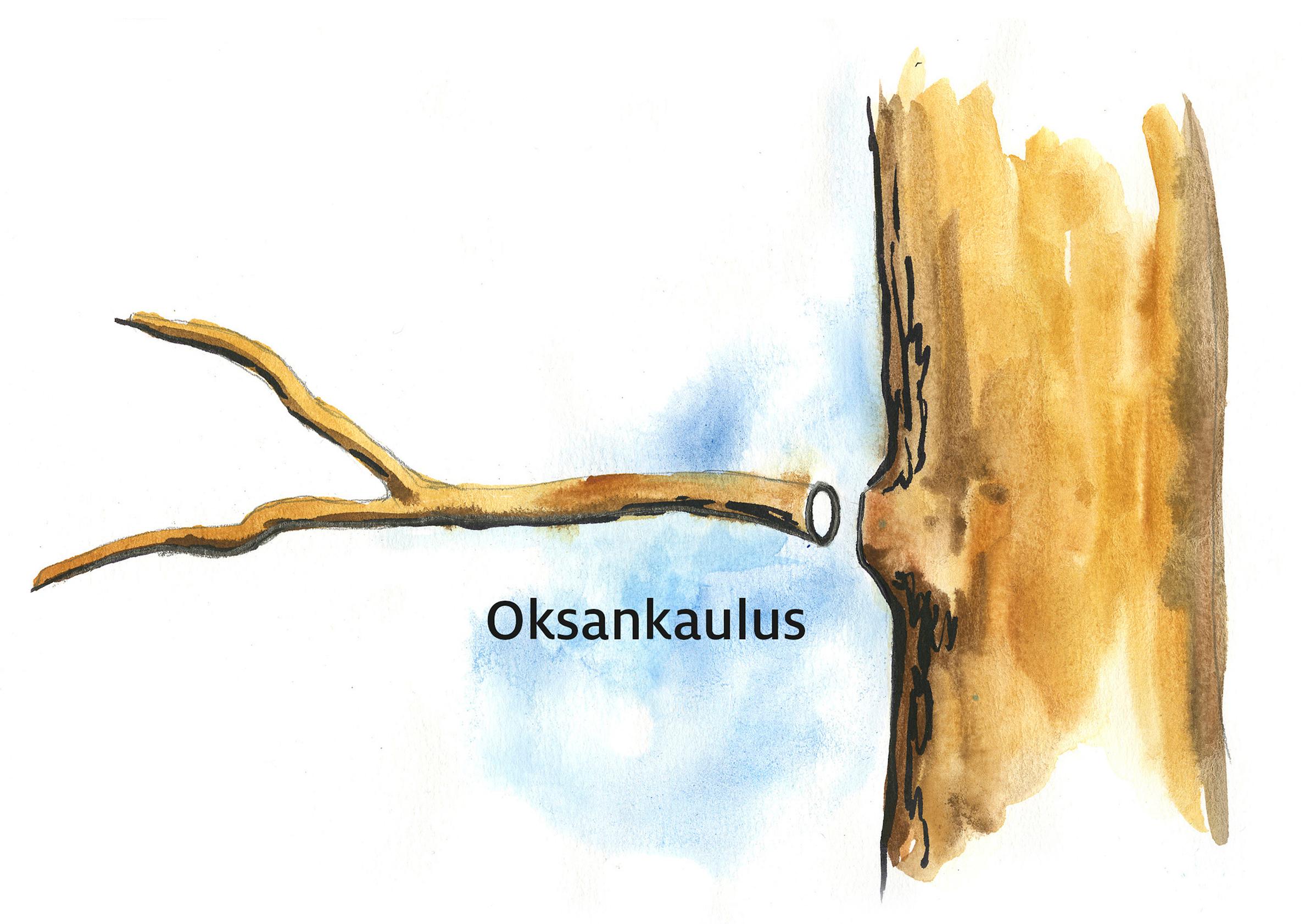 - Oksa haaroittuu läheltä leikkauskohtaa. Päätä siis ennen leikkaamista, mihin kohtaan haluat uuden haaran muodostuvan.