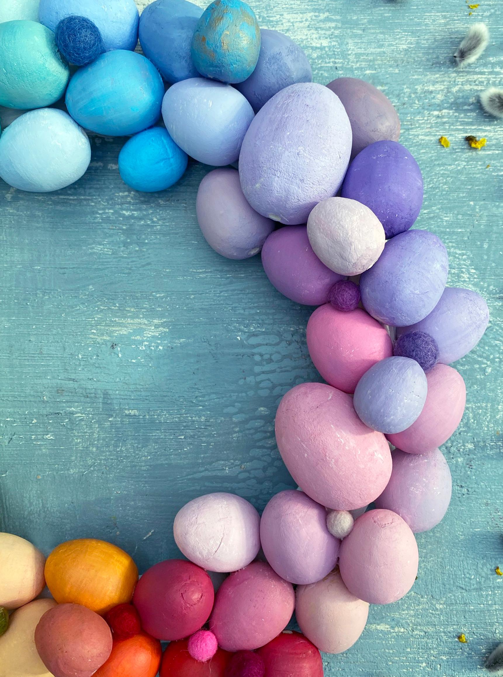 Kevät saa tulla! Pääsiäiskranssi hehkuu sateenkaaren sävyissä – näin askartelet sen helposti paperimassamunista