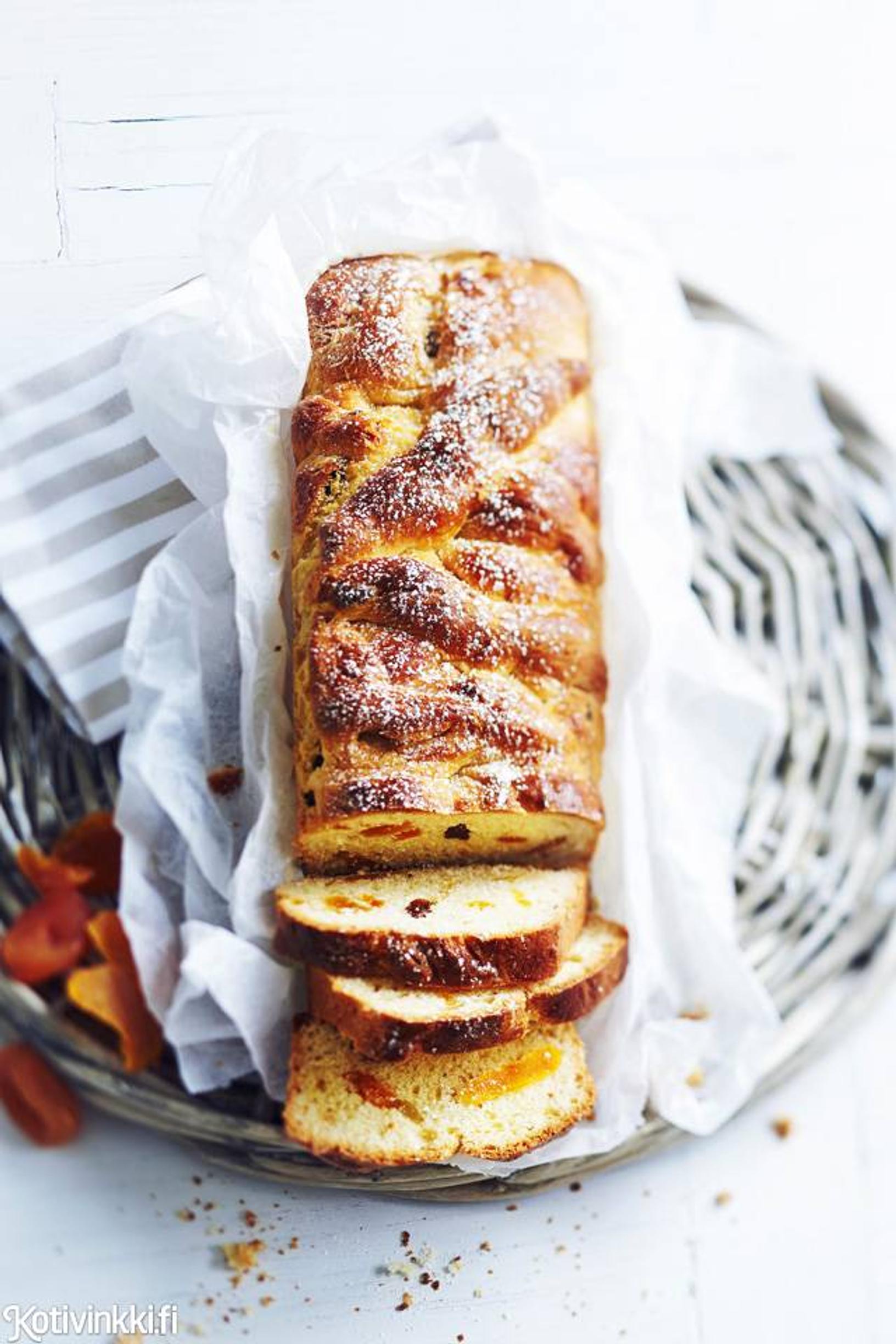 Rahkapulla kuuluu pääsiäiseen! Letitetty taikina antaa pääsiäispullalle kauniin reunan. Sitruunainen rahkatäyte varmistaa ihanan maun ja aprikoosi kauniin ulkonäön.