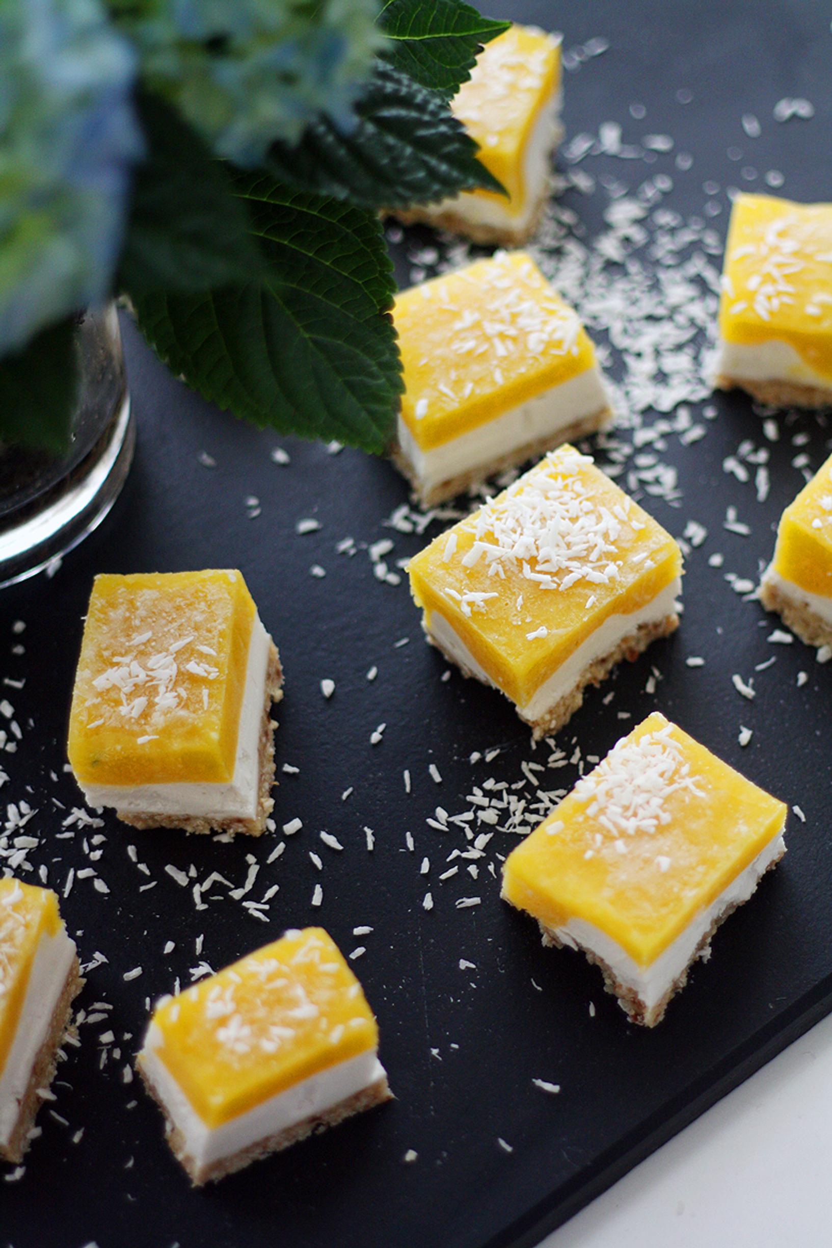 Helpot mango-kookospalat ovat hyvä vaihtoehto, jos etsit hieman kevyempiä pääsiäisleivonnaisia. Raakaleivonnaiset valmistuvat tutuista raaka-aineista.