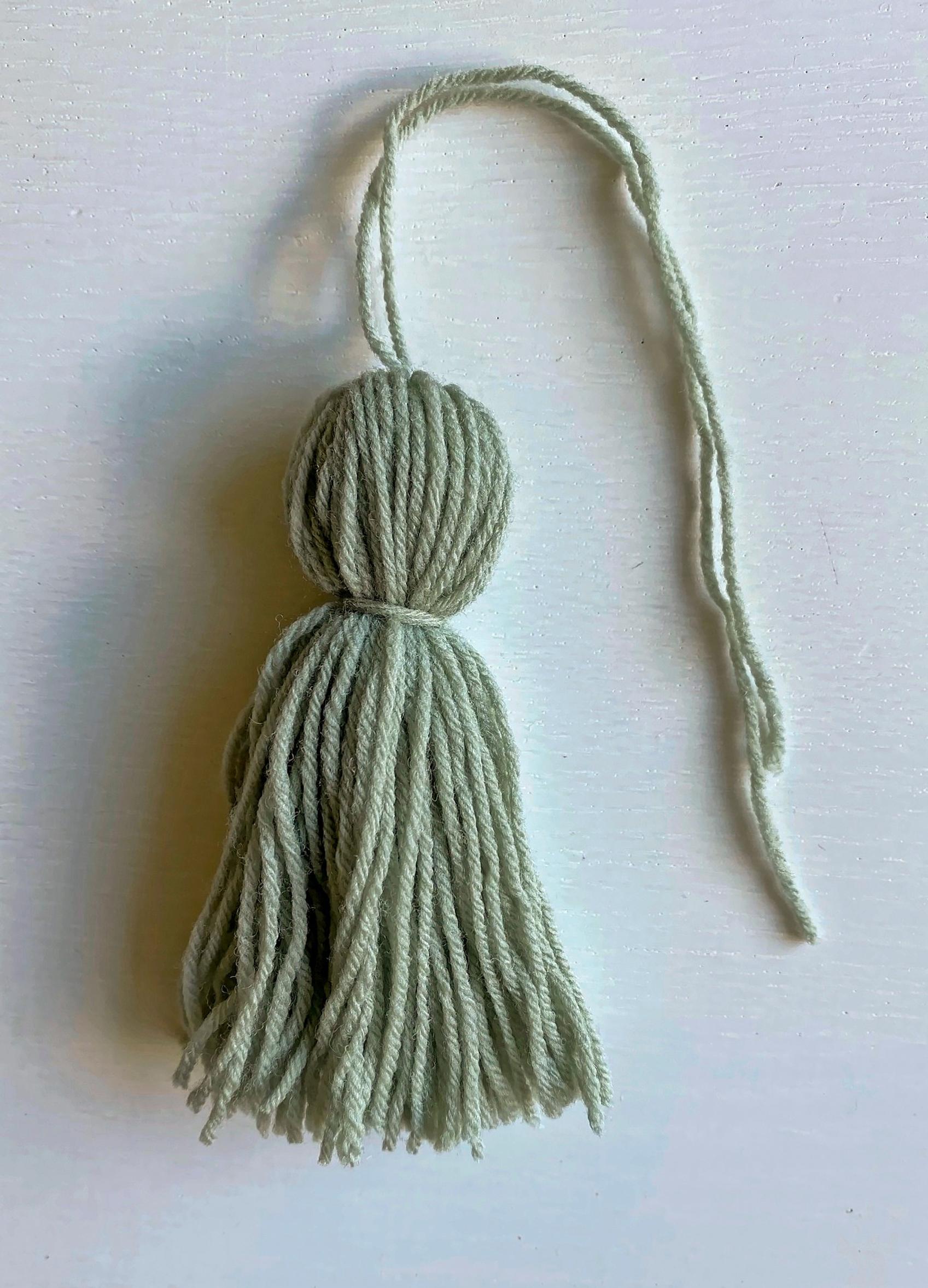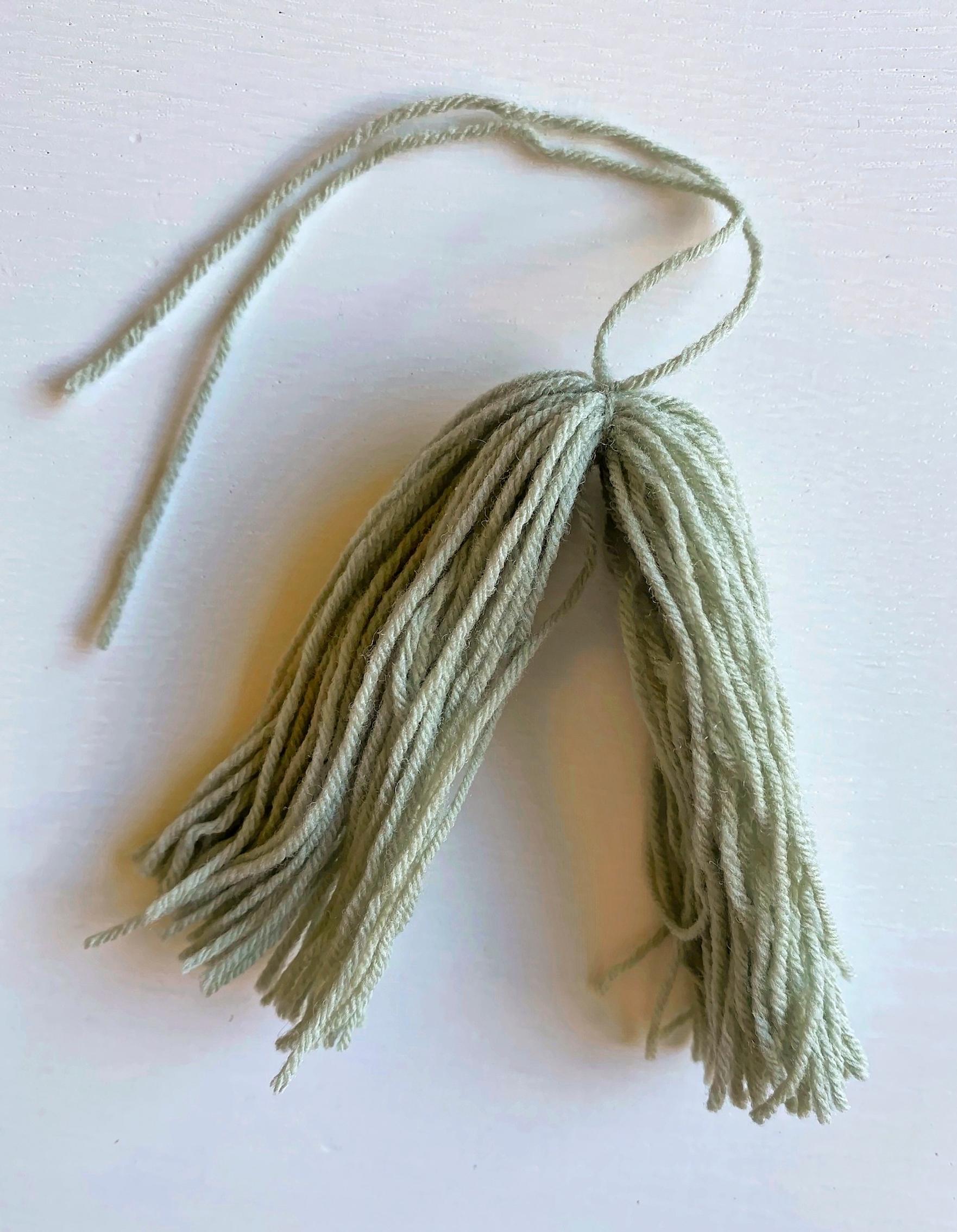 3. Kierrä lankaa muutaman kerran nipun ympäri n. 2 cm päähän tasselin yläosasta. Leikkaa langat auki ja tasoita tarvittaessa.