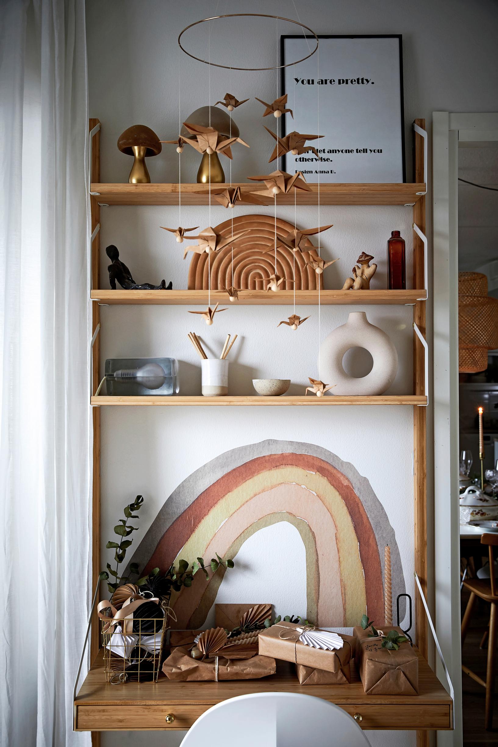 Anna ja Jan Blomqvistin perheen joulukoti on harmoninen sekoitus kauniita luonnonmateriaaleja, itse tehtyjä yksityiskohtia ja varmalla silmällä rakennettuja asetelmia. IT-alalla työskentelevä Anna, 34, on intohimoinen askartelija, ja varsinkin paperi kiehtoo häntä materiaalina. Jouluksi hän taittelee paperista upeita mobileita ja muita koristeita. Hän on ottanut perinteeksi kehittää joka joulun alla uuden paperitähden, jonka ohjeet hän jakaa myös muille innokkaille askartelijoille Instagram-tilinsä @by.anna.b kautta.