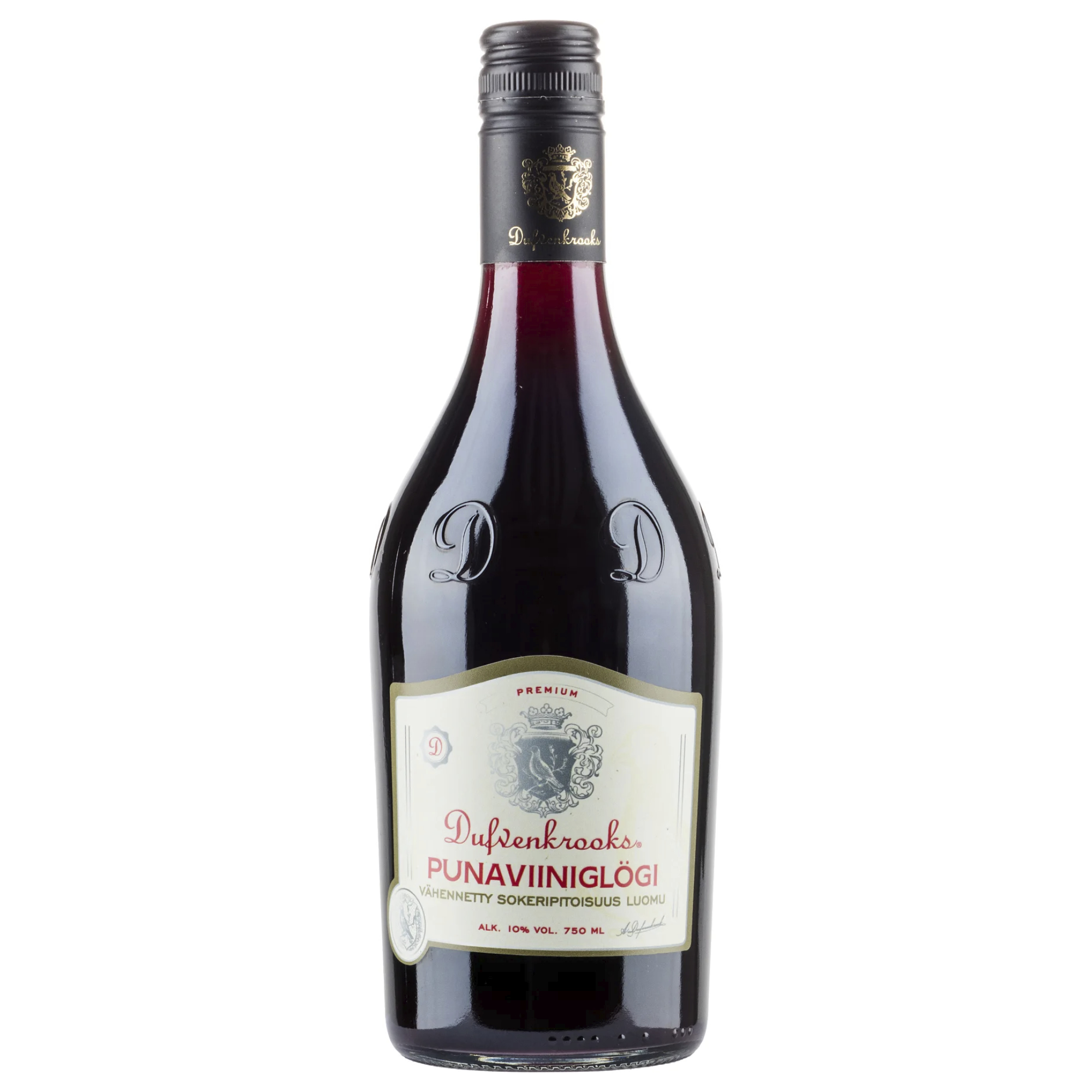 Dufvenkrooks-punaviiniglögi vähennetyllä sokerilla 10 %. Hinta 9,90 euroa / 0,75 l (Bevsmart)