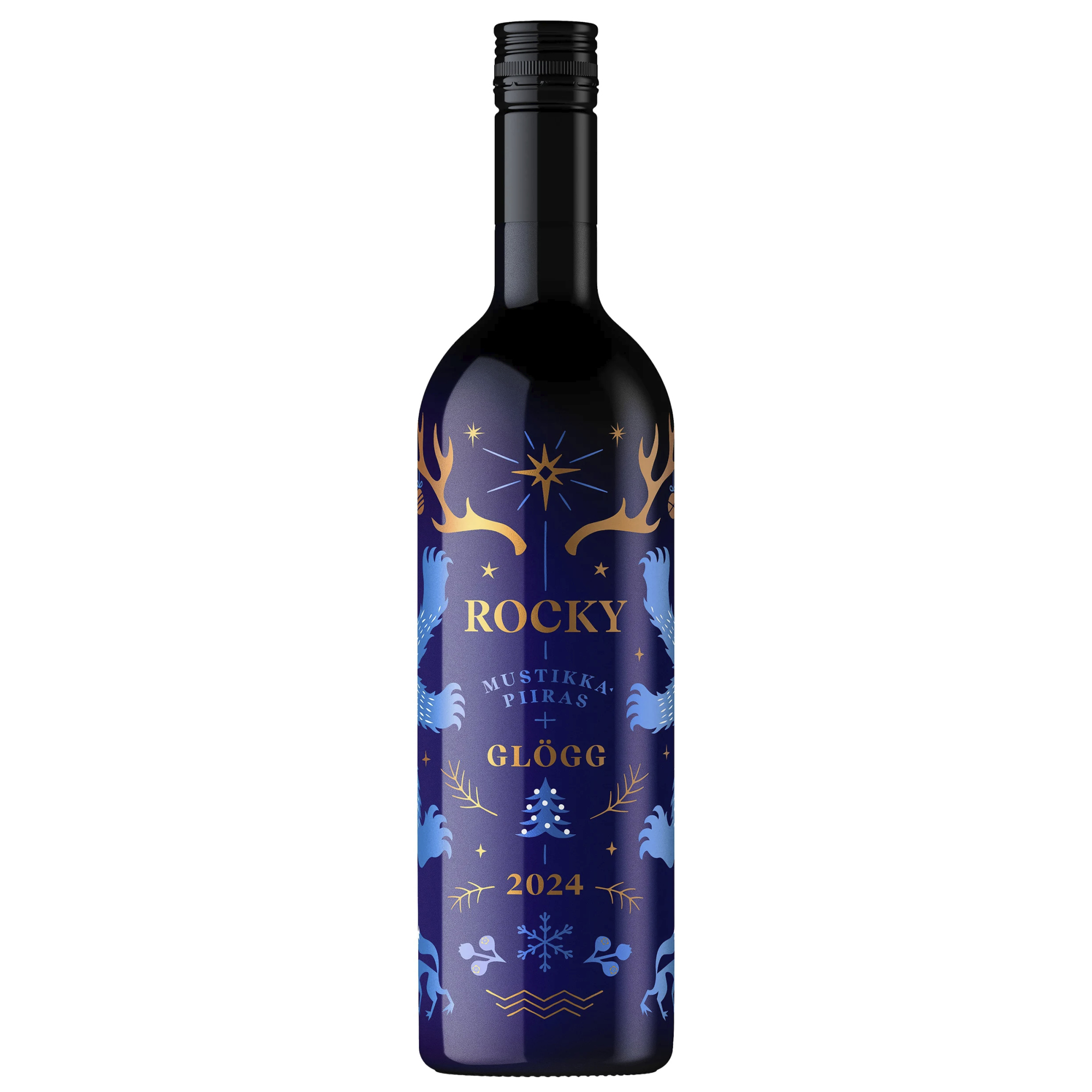 Rocky Mustikkapiiras-glögi 8 %. Hinta 10,99 euroa / 0,75l (Pernod Ricard Finland)