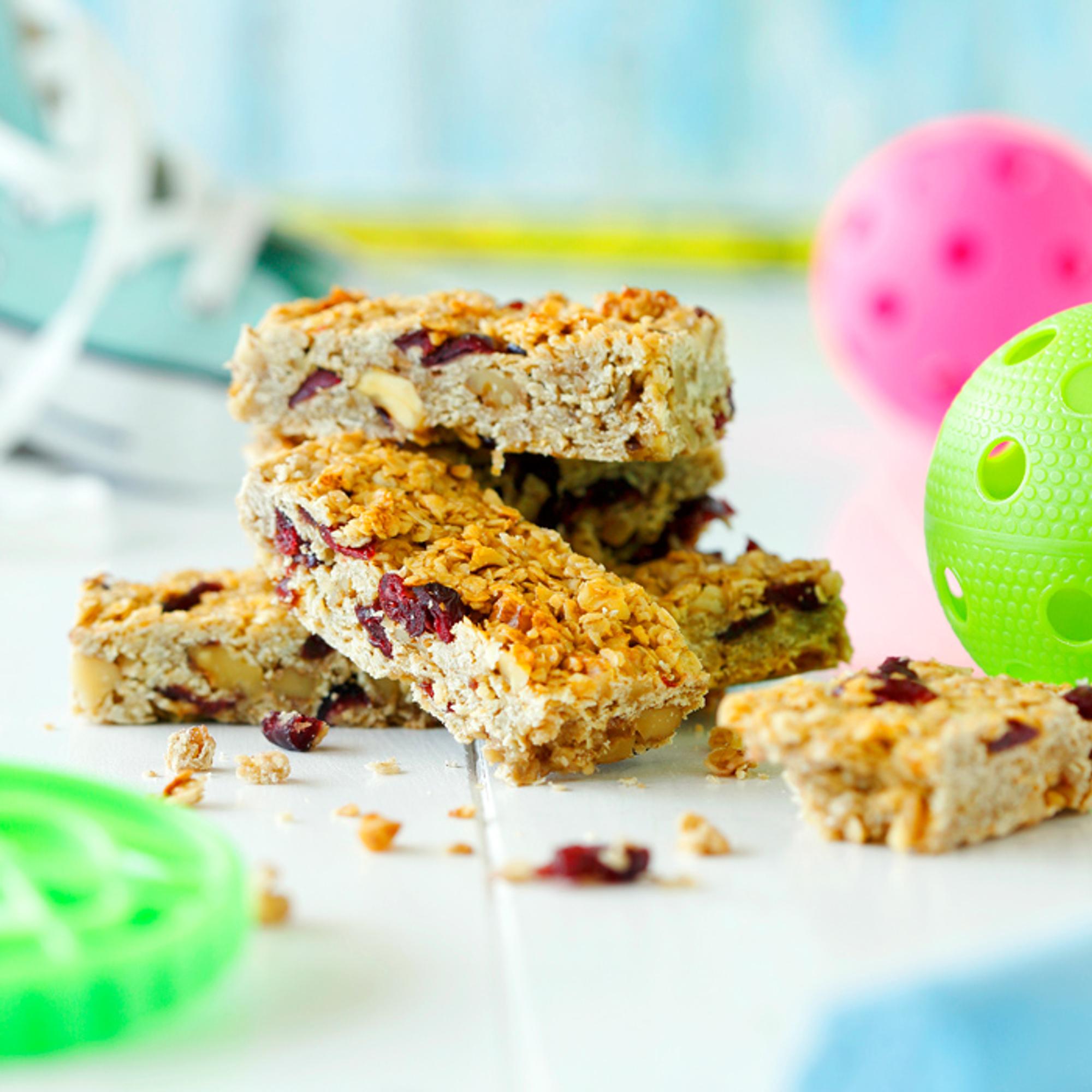 Kaurahiutaleita ja pähkinöitä sisältävät myslipatukat pitävät hyvin nälkää. Sokerin sijaan patukat makeutetaan hunajalla ja kuivatuilla karpaloilla. Näitä tekee mieli napostella!