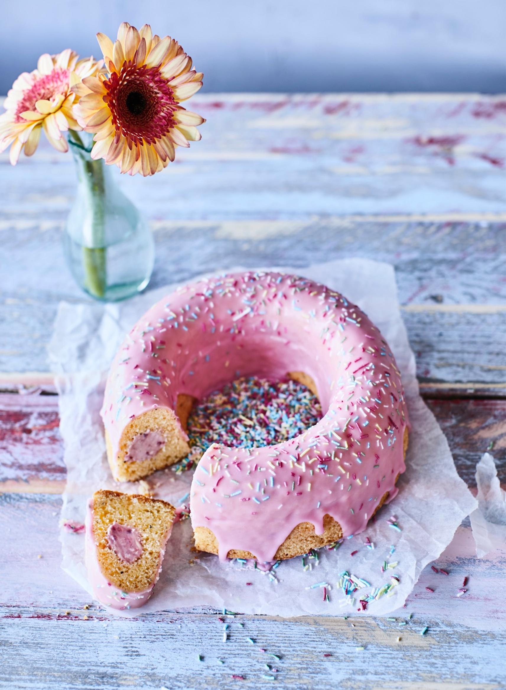 Mahtava donitsikakku taltuttaa suuremmankin makeannälän. Kakun muotoon tehty donitsi on myös siitä ihana herkku, että siitä riittää jaettavaksi suuremmallekin porukalle.