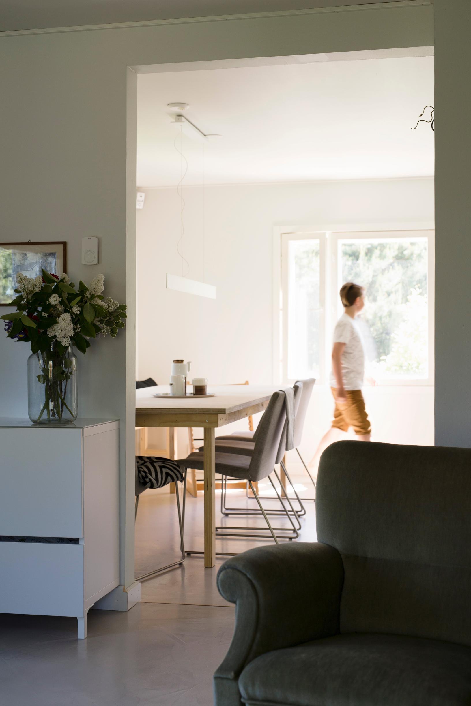 – Teimme kaksiosaisen kaupan. Saimme jo alkukaupan jälkeen koko kevään ajan vierailla talossa mittaillen ja suunnitellen. Ehkä ihastus syttyi jo siinä, kun pojat juoksivat ympäri alakertaa ja selvästi viihtyivät, Terhi kertoo.