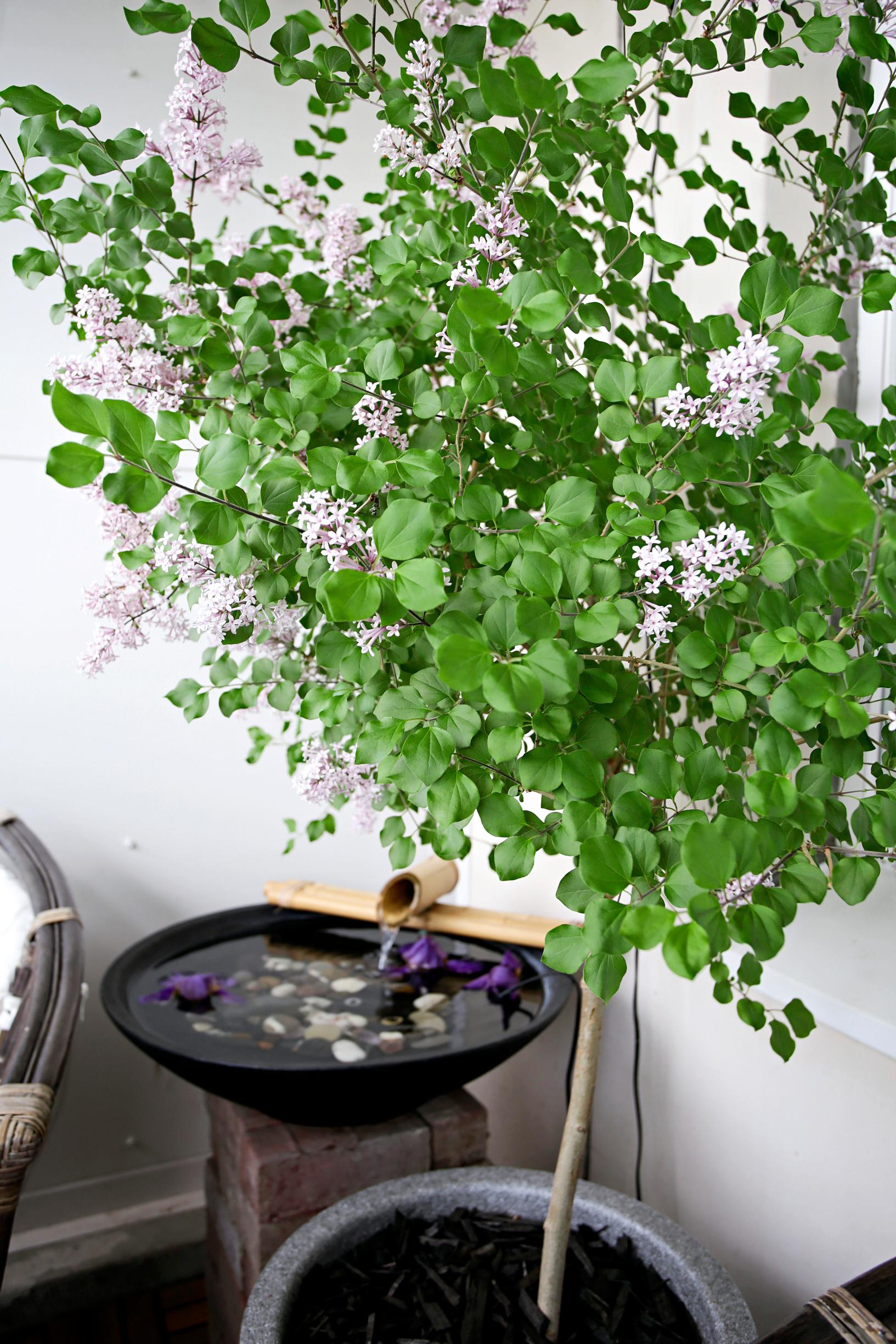 Jos kaipaat jotain korkeaa, istuta rungollinen pensas tai pieni puu. Rungollinen aronia, syyshortensia ja pikkusyreeni sopivat aurinkoon tai puolivarjoon. Tiesitkö, että jopa kotoisista herukoista on saatavilla rungollisia versioita? Jos haluat parvekkeelle muotoja, istuta leikkausta sietäviä pensaita. Suositeltavin on taikinamarja, jota ei turhaan kutsuta pohjolan puksipuuksi.