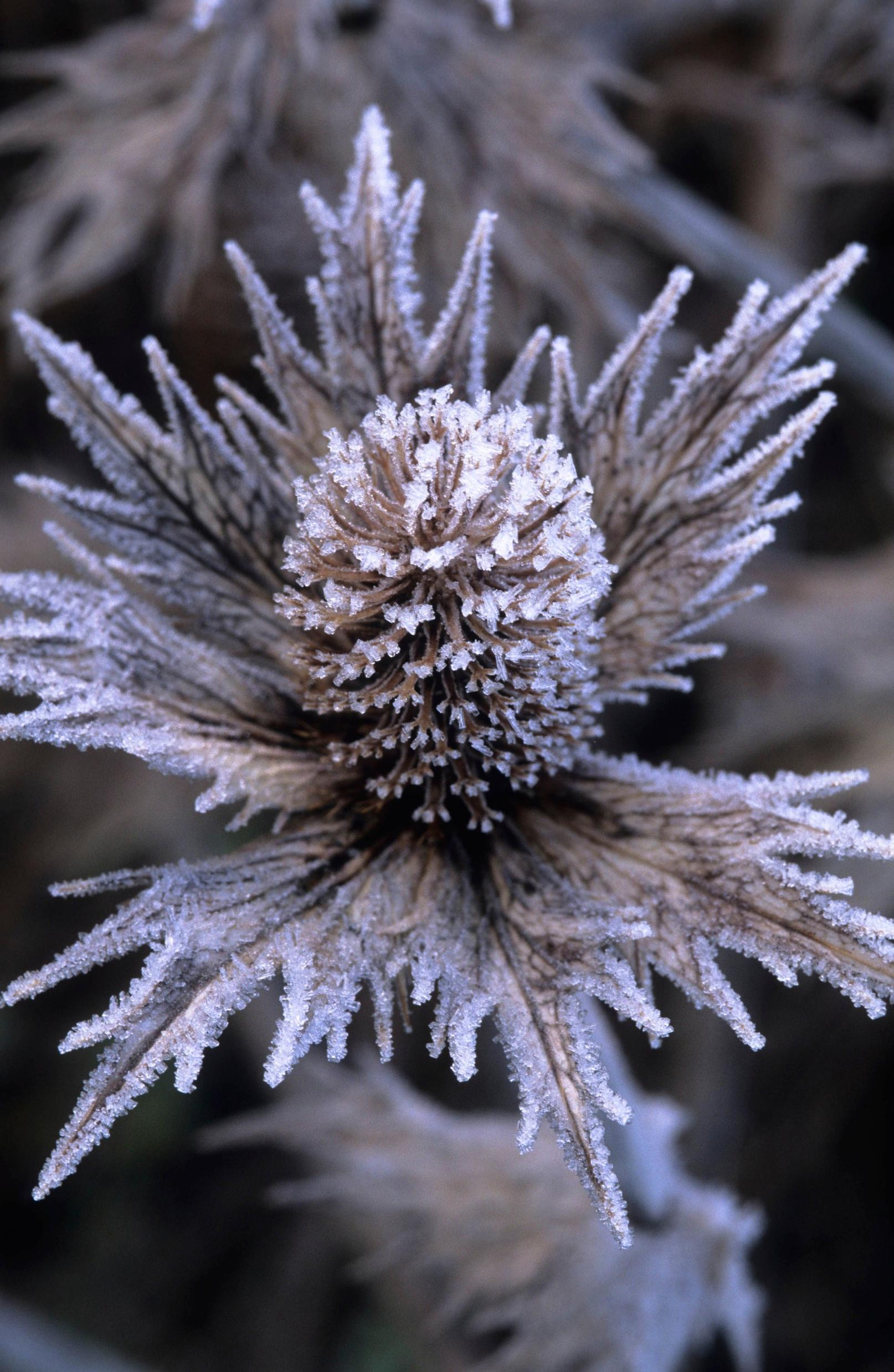 Jos kuura pääsee yllättämään loppukesästä kukkivan hohtopiikkiputken, tuloksena on talvipuutarhan kaunein koriste. Veistoksellinen perenna on helppo kasvattaa siemenestä, ja se pärjää paahteisessakin paikassa. Hohtopiikkiputki (Eryngium giganteum) ei aina selviä kevääseen, mutta kylväytyy kernaasti ja jää siten puutarhaan ilahduttamaan tarhuria ja pölyttäjiä.