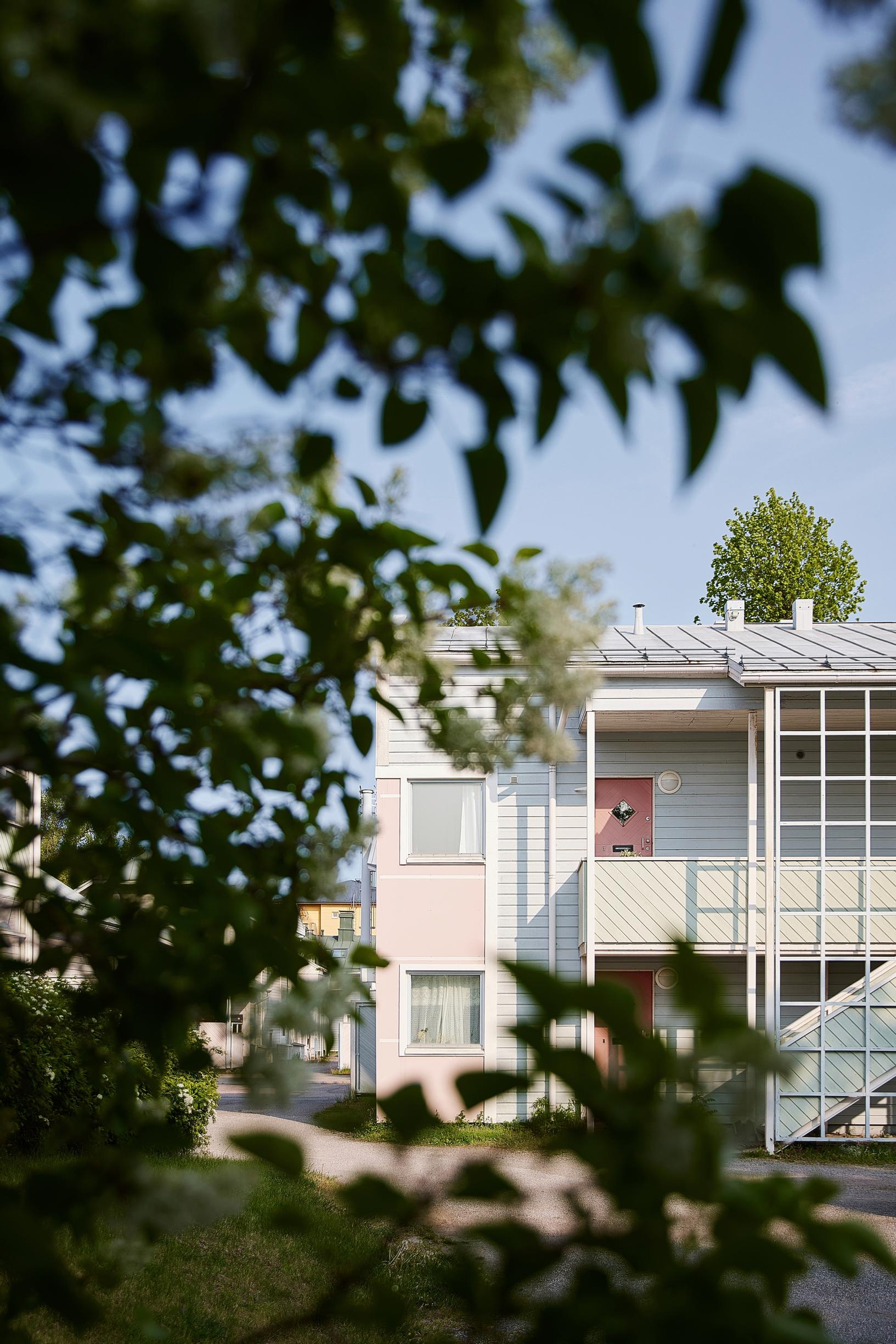 Vaikka itse rakennus ei ole vanhoja puutaloja rakastavan parin suosikkeja Hangossa, sopivasti vastaan tulleesta järkevän hintaisesta ja sijainniltaan loistavasta asunnosta sai remontilla mieleisen, ja näkymä puutaloihin on kaunis.