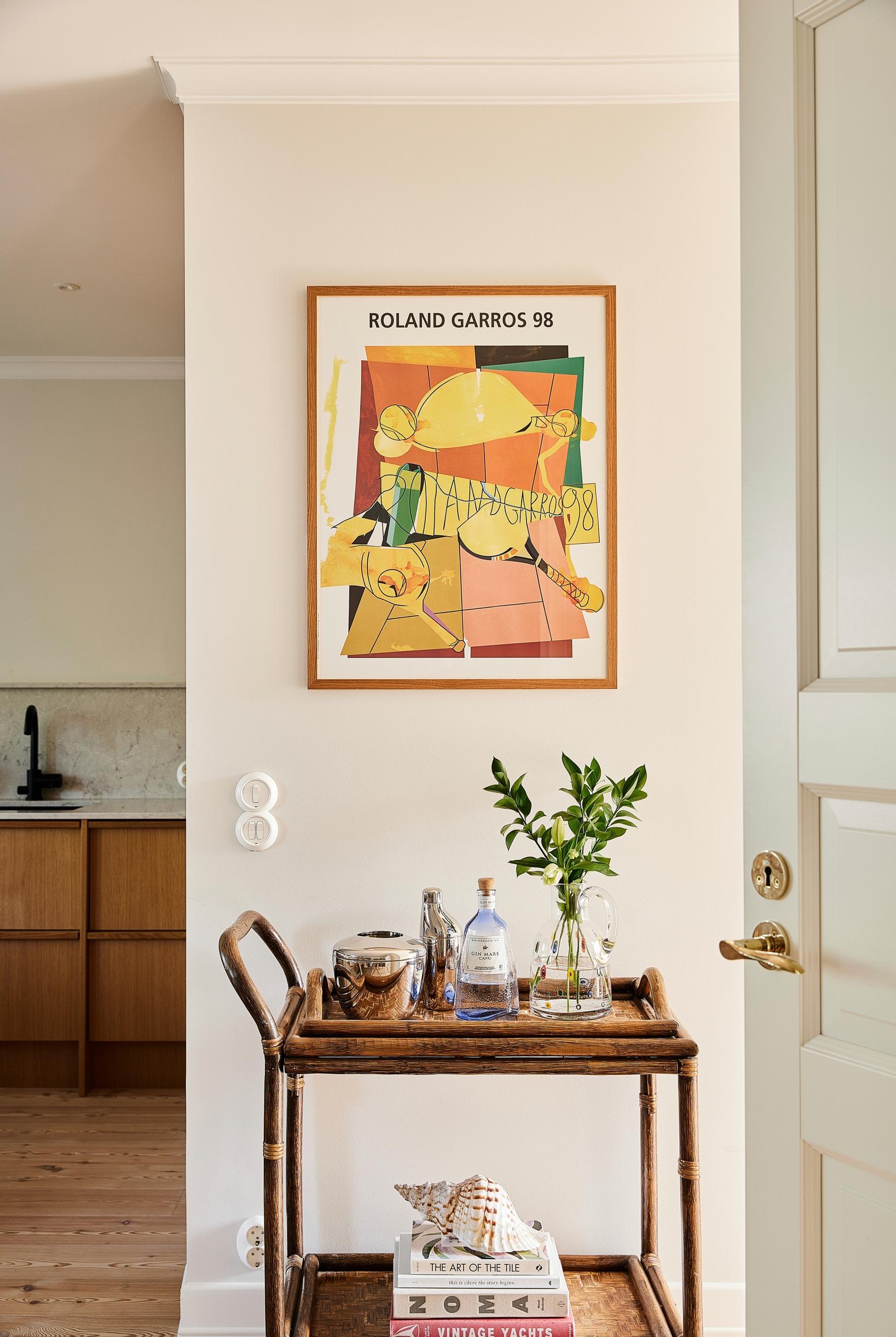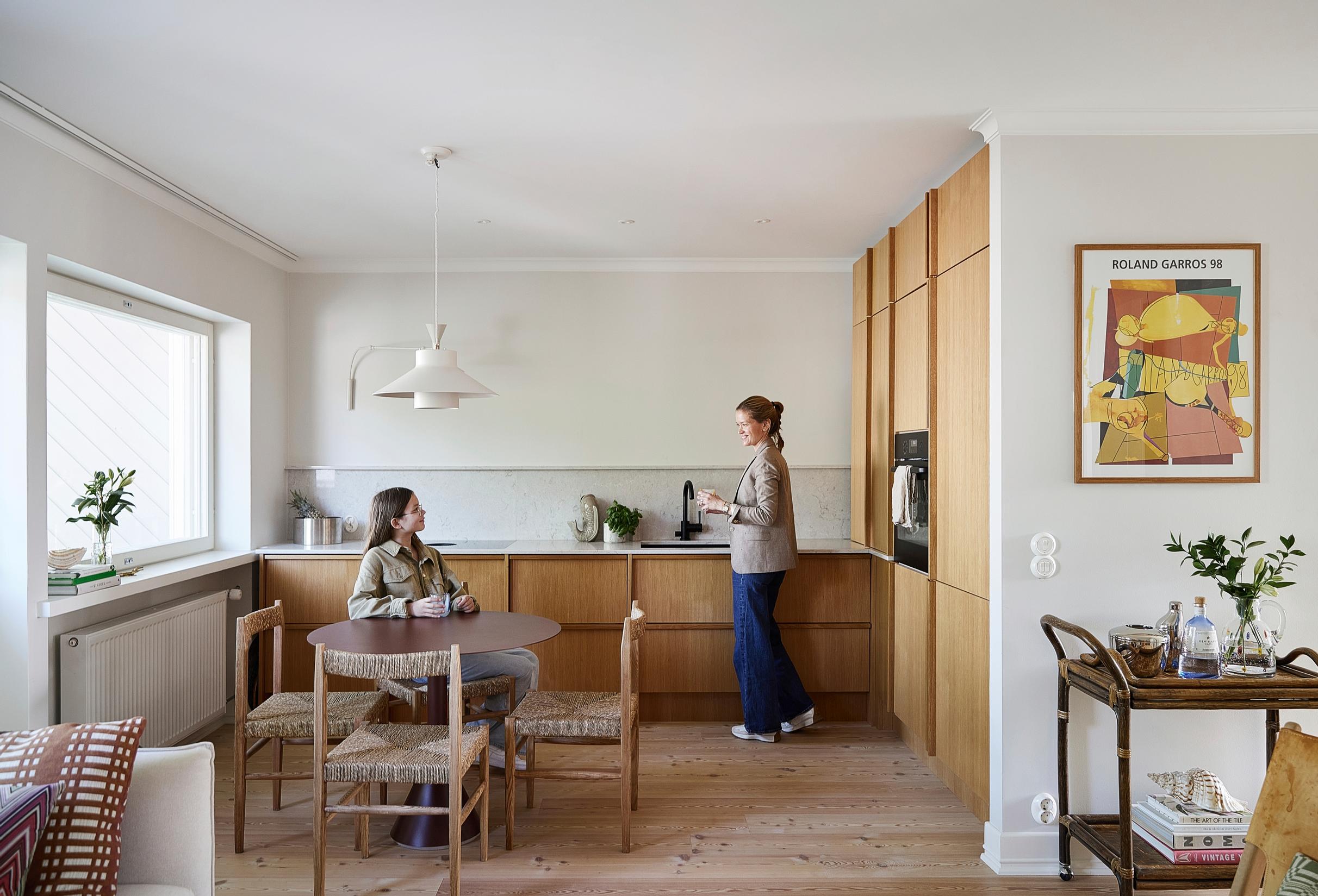 Tuomas: Asunnon tunnelma ja sijainti ovat meille isoja plussia. Kaikki on lähellä: rannat, ravintolat, putiikit ja tenniskentät. Kodissa ehdottomia suosikkejamme ovat tammiviiluinen keittiö aamiaiskaappeineen sekä kylpyhuone ja sauna.