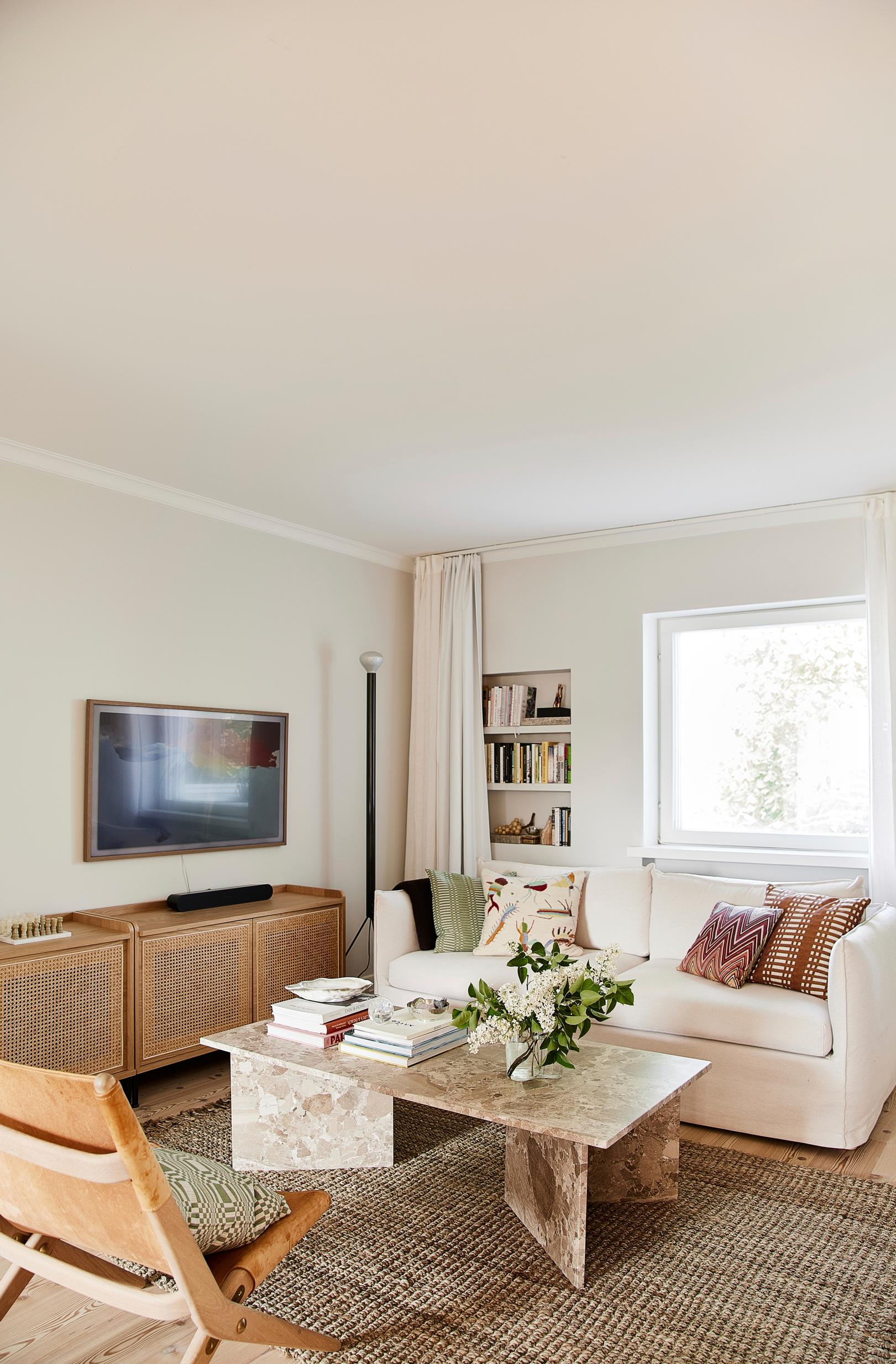 Anna: Halusimme luoda tilan, jossa meidän perheellämme on hyvä olla ja rentoutua. Asunto on melko pieni, joten tänne ei mahdu yökyläilijöitä, vaan se on suunniteltu ensisijaisesti omiin tarpeisiimme. Tavoittelimme tunnelmaa, jossa rentous kohtaa hienostuneisuuden, kuten ajattelemme myös Hangon hengestä. Sisustuksen sävyt ja materiaalit on poimittu ympäröivästä maisemasta: merellisyys, puu ja hiekan sävyt ovat vahvasti läsnä. Lopputuloksena on kompakti mutta viihtyisä koti, joka kutsuu rauhoittumaan.