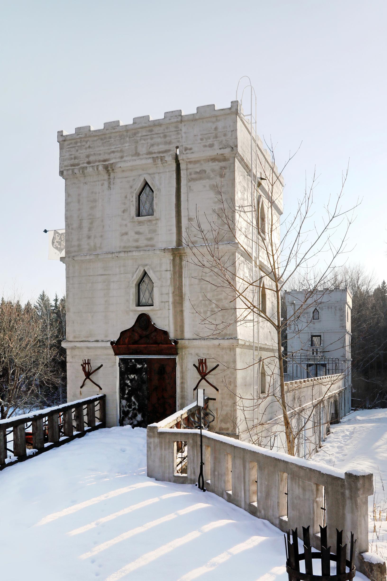 Lennokkaat ideat eivät loppuneet vielä tähän. Olavi oli aina haaveillut tornien rakentamisesta, mutta ne eivät olisi sopineet asuinrakennukseen. Ann oli esittänyt miehelleen toiveen kahvilatilasta. Voisiko nämä asiat yhdistää? Aamukahvin lomassa Olavi teki piirustukset muuriin ja kahteen 11-metriseen torniin. Vihreää valoa saatuaan mies ryhtyi tuumasta toimeen.