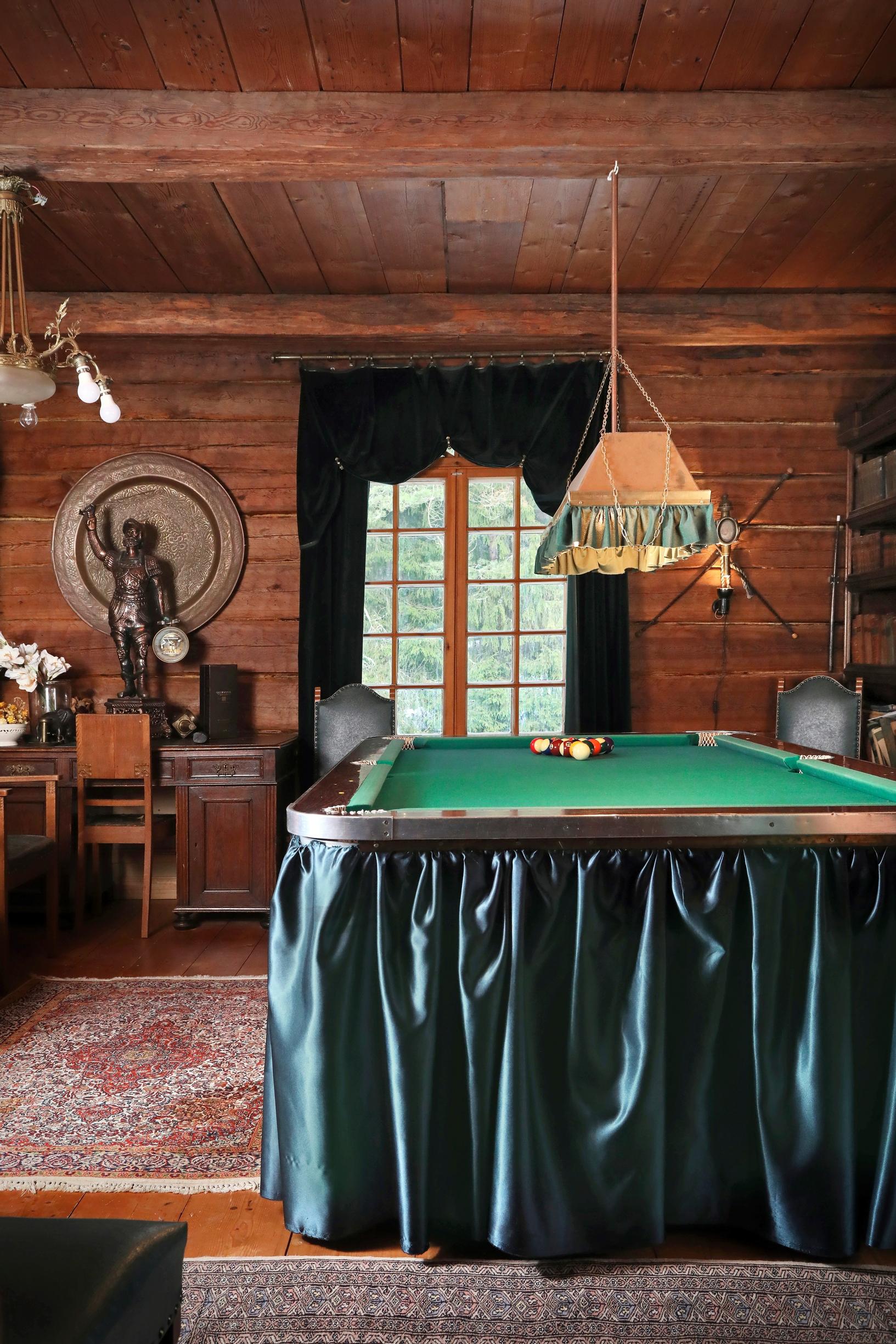 Keskieurooppalaista henkeä huokuva talo haluttiin sisustaa tyyliin sopivin kalustein. Tärkeimpiä kriteereitä oli, että ne miellyttäisivät omaa silmää. Valmiita ratkaisuja ei juuri ollut, joten lähes kaikki tehtiin itse. Edellytyksiä tekemiseen oli parilla ihan verenperinnön ansiosta.