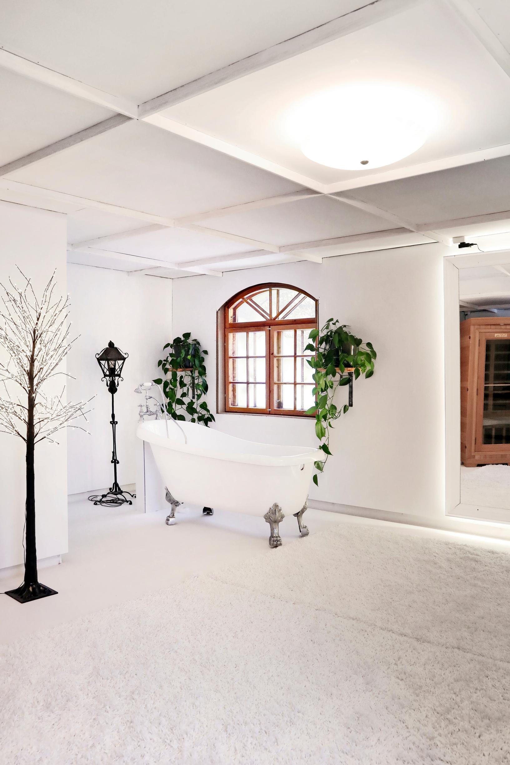 Olavi kehuu kovasti kellariin sijoitettua 60 kilowatin Arimax-puukattilaa 3 000 litran vesisäiliöllä, joka pitää koko talon lämpimänä. Puita lämmitykseen kuluu 70 mottia vuodessa, itse kaadettuna tietenkin.