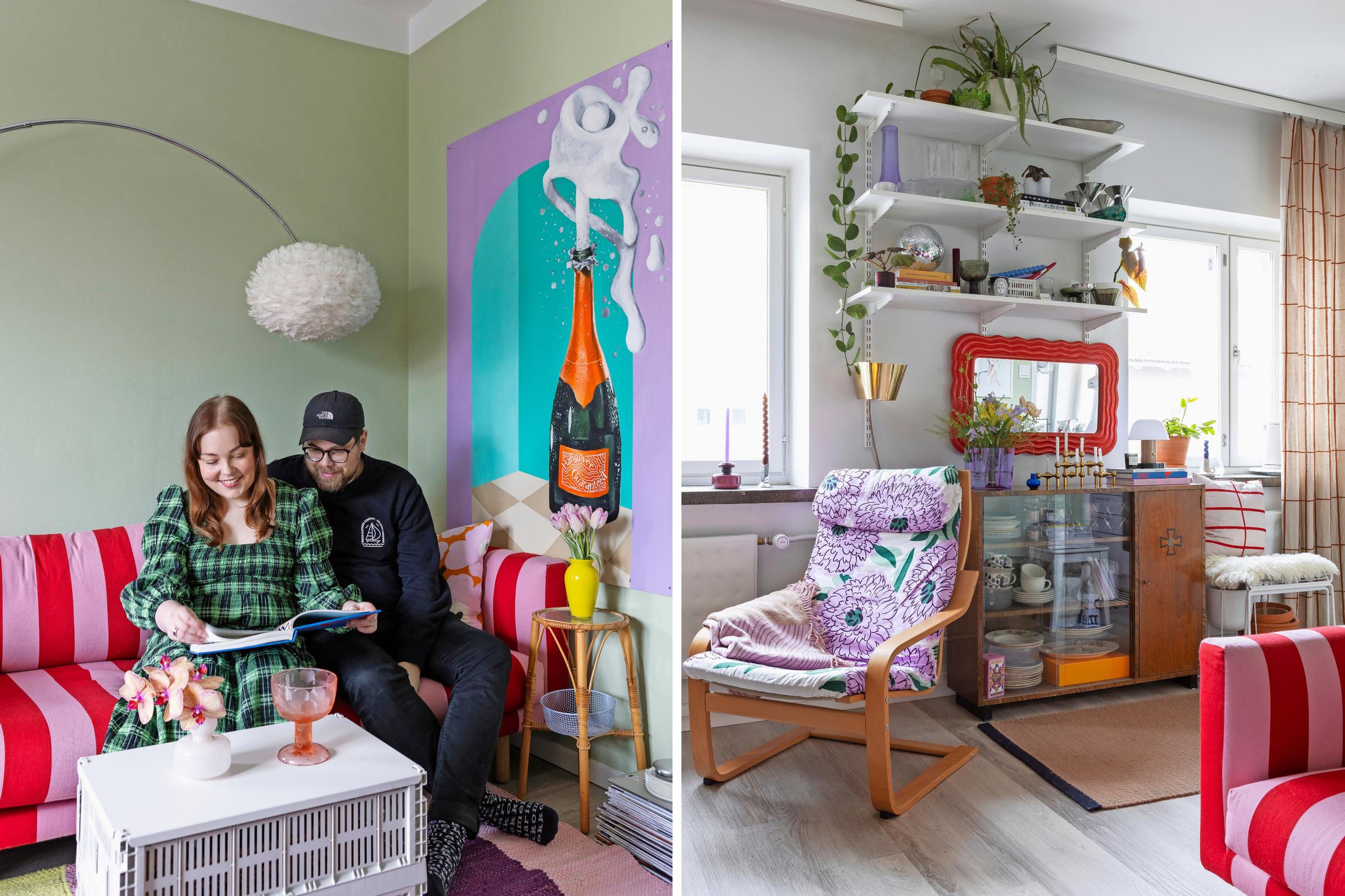 Hulluttelu sallittu! Laura ja Elias sisustivat pienen vuokrakaksion runsaasti ja värikkäästi: ”Kaiken ei tarvitse mätsätä keskenään”