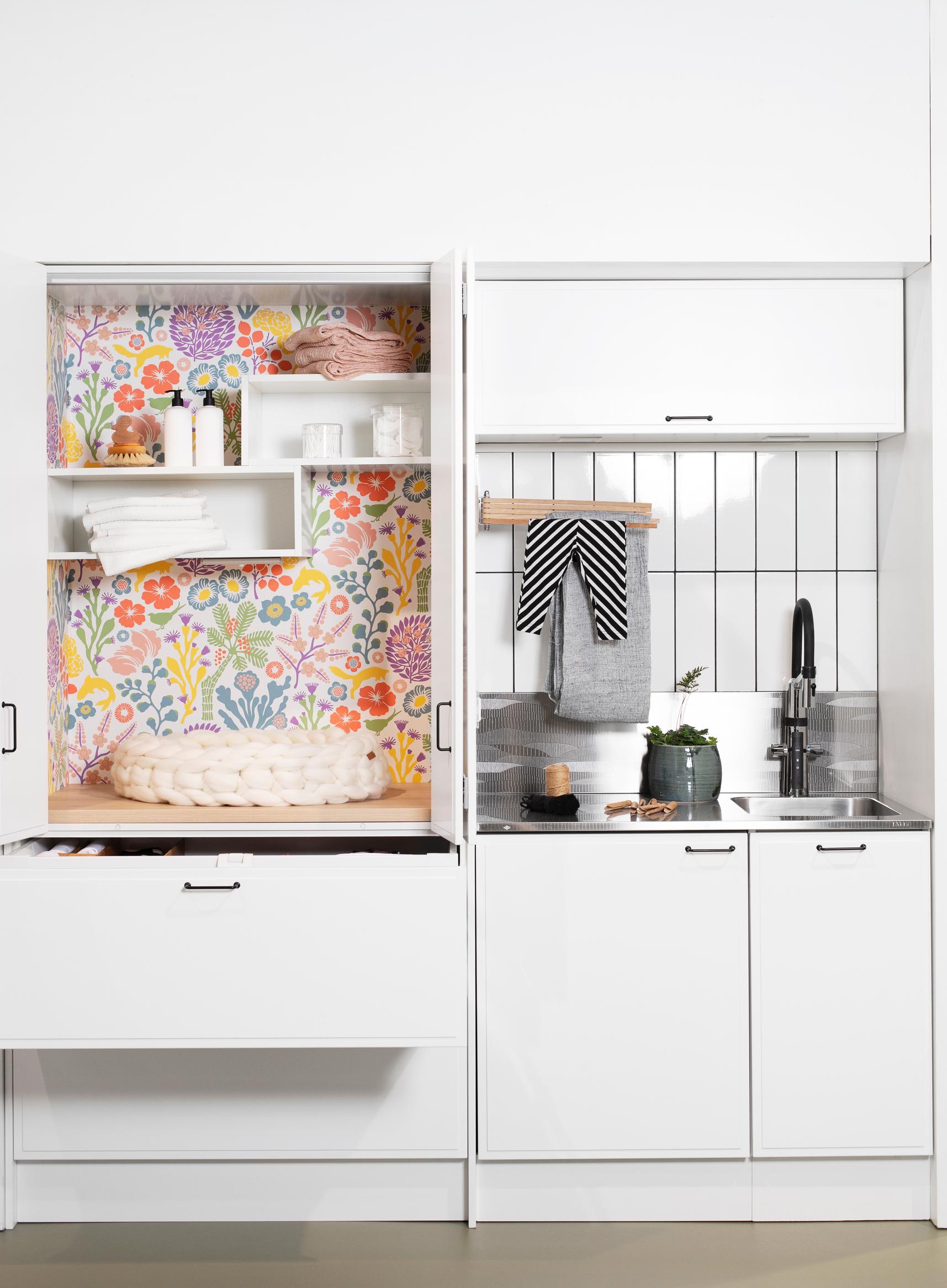 Pienten kaupunkikotien kalusteissa pitää sovittaa paljon asioita minimitiloihin. Lapsiperheen kodinhoitohuoneen uusi tähti on babykaappi, jossa vauvanhoitoon liittyvät tarvikkeet saa piiloon yhdellä kädenheilautuksella.