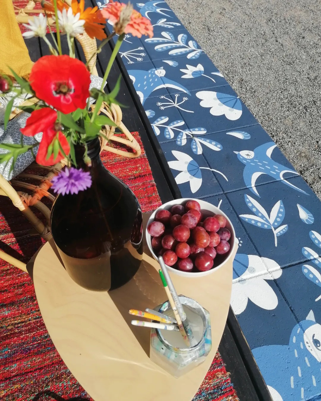 Kun Gigi saa idean, hän ei aikaile tarttua siveltimiin. Ainahan voi maalata uudestaan, jos lopputulos ei miellytä tai kaipaa vaihtelua. Pihalaattoja voi maalata talvella sisällä ja viedä ulos, kun maa on taas sulanut.