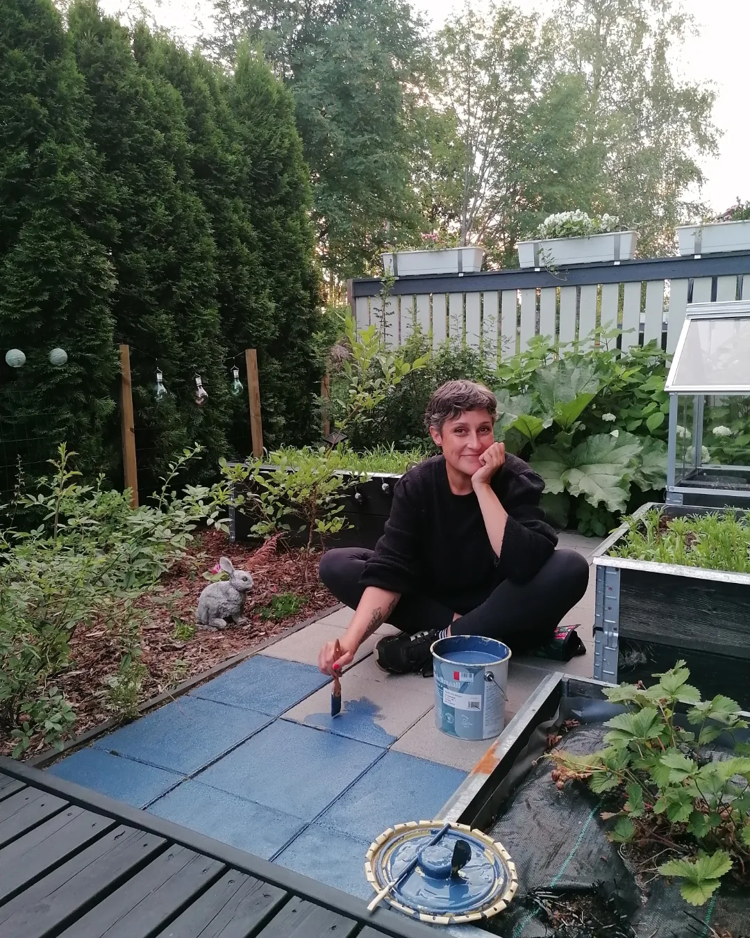 Muutimme tänä kesänä uuteen kotiin, jonka pihalle edelliset asukkaat olivat laittaneet laattoja. Päätin maalata ne paremmin taloon sopiviksi.