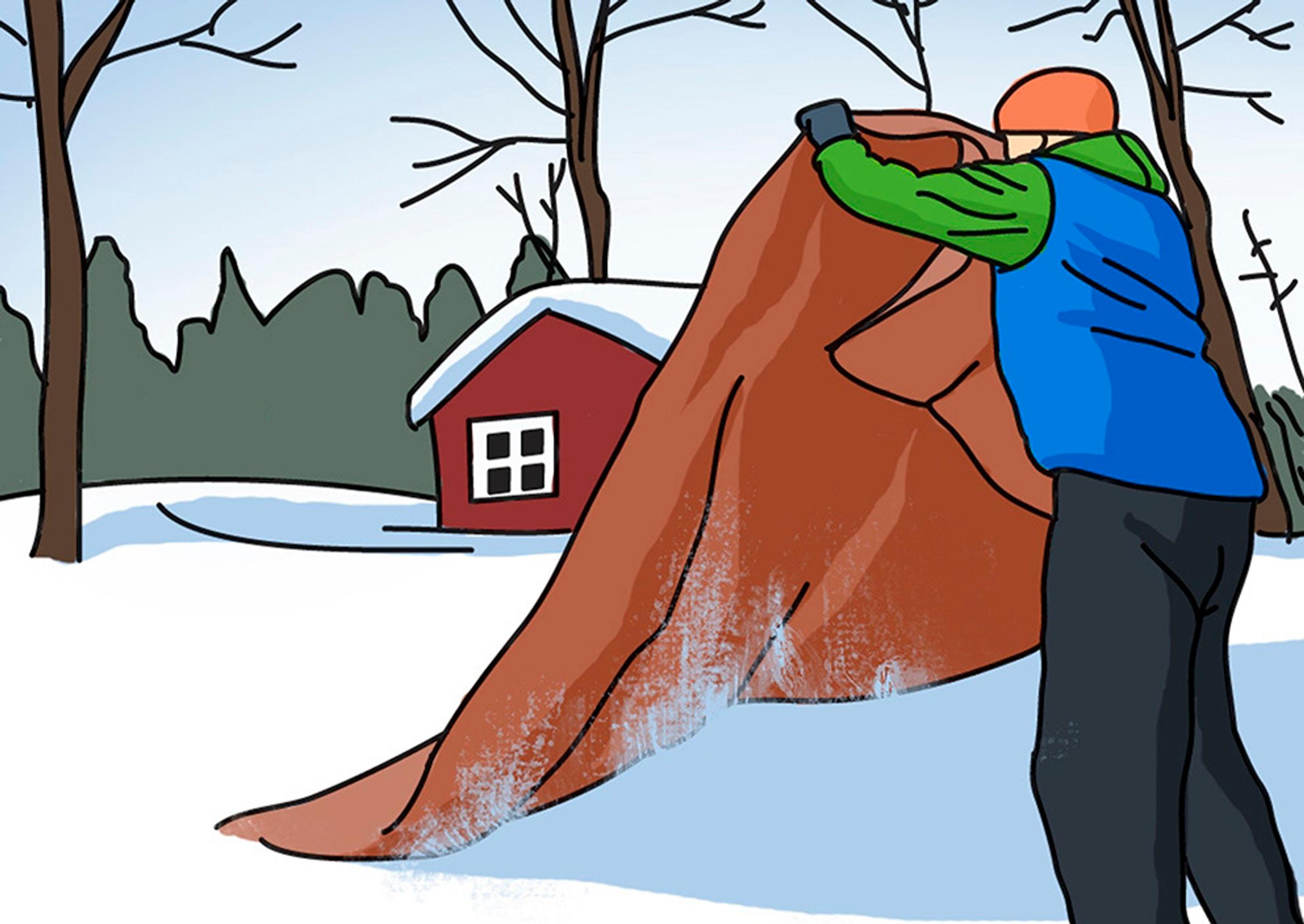 1. Rullaa matto ja vie ulos, kun ulkona on vähintään viisi astetta pakkasta ja puhdasta lunta riittämiin.