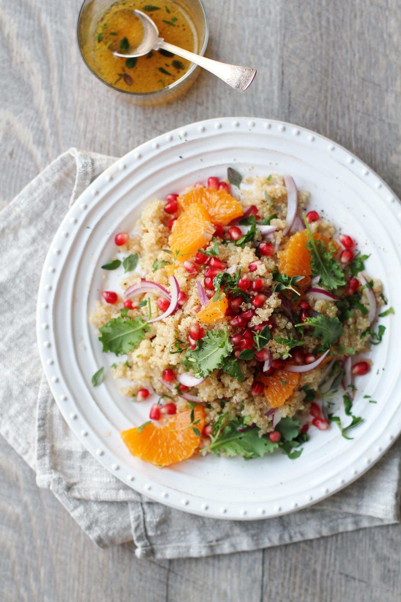 Juustoisen kakun pariksi sopii tabbouleh-salaatin talvinen versio, jossa hurmaavat raikkaat granaattiomenansiemenet.