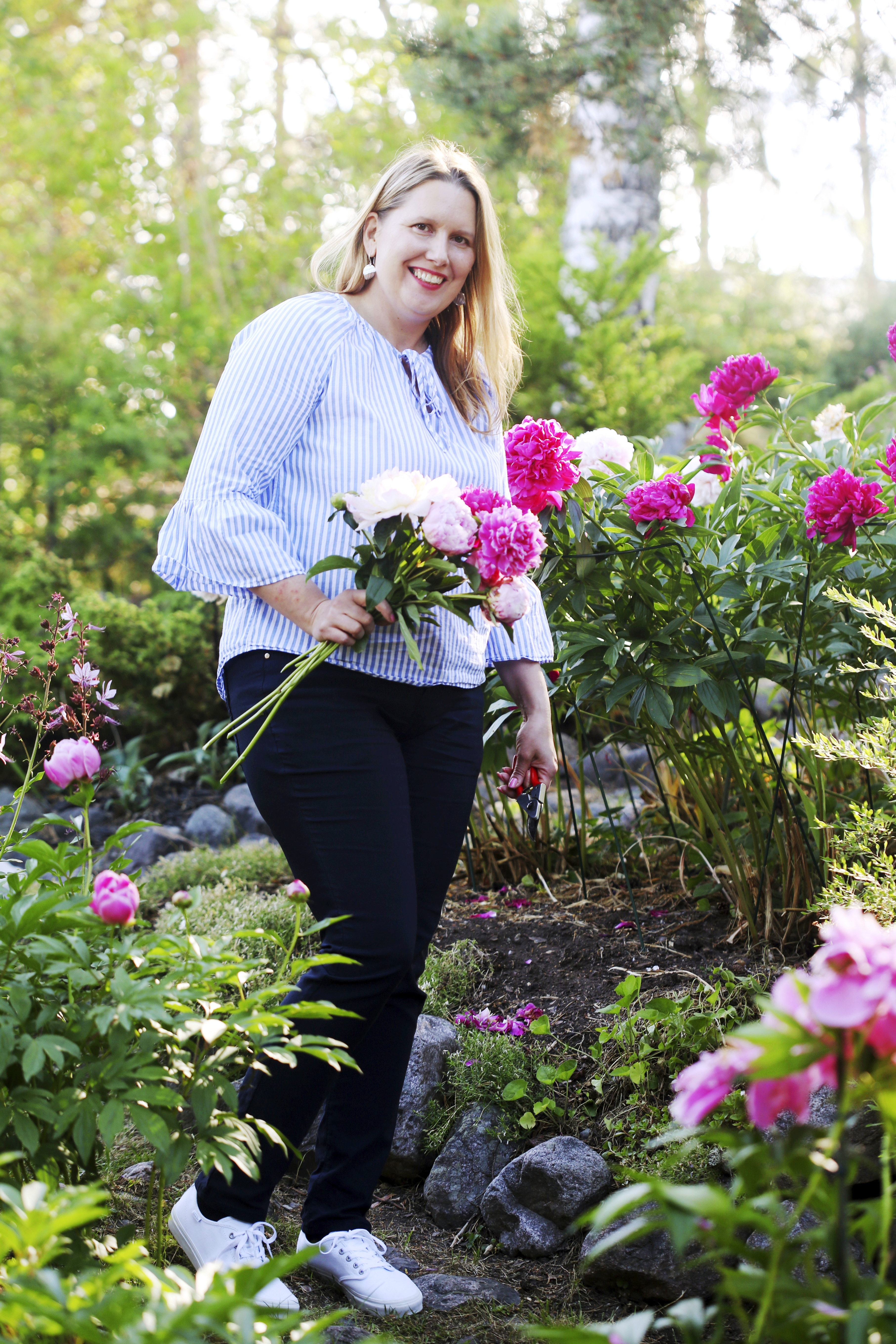 Pionien kukkiessa Hanna ei malttaisi pysyä poissa puutarhastaan: ”Tekee mieli siirtää patja puutarhaan ja nukkua pionimeren alla”