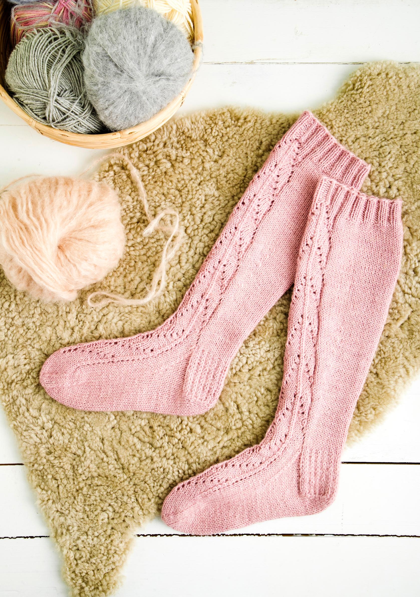 Pitkät pitsisukat syntyvät neulesuunnittelija Merja Ojanperän ohjeella – näin neulot Kevätsäteet-sukat itse