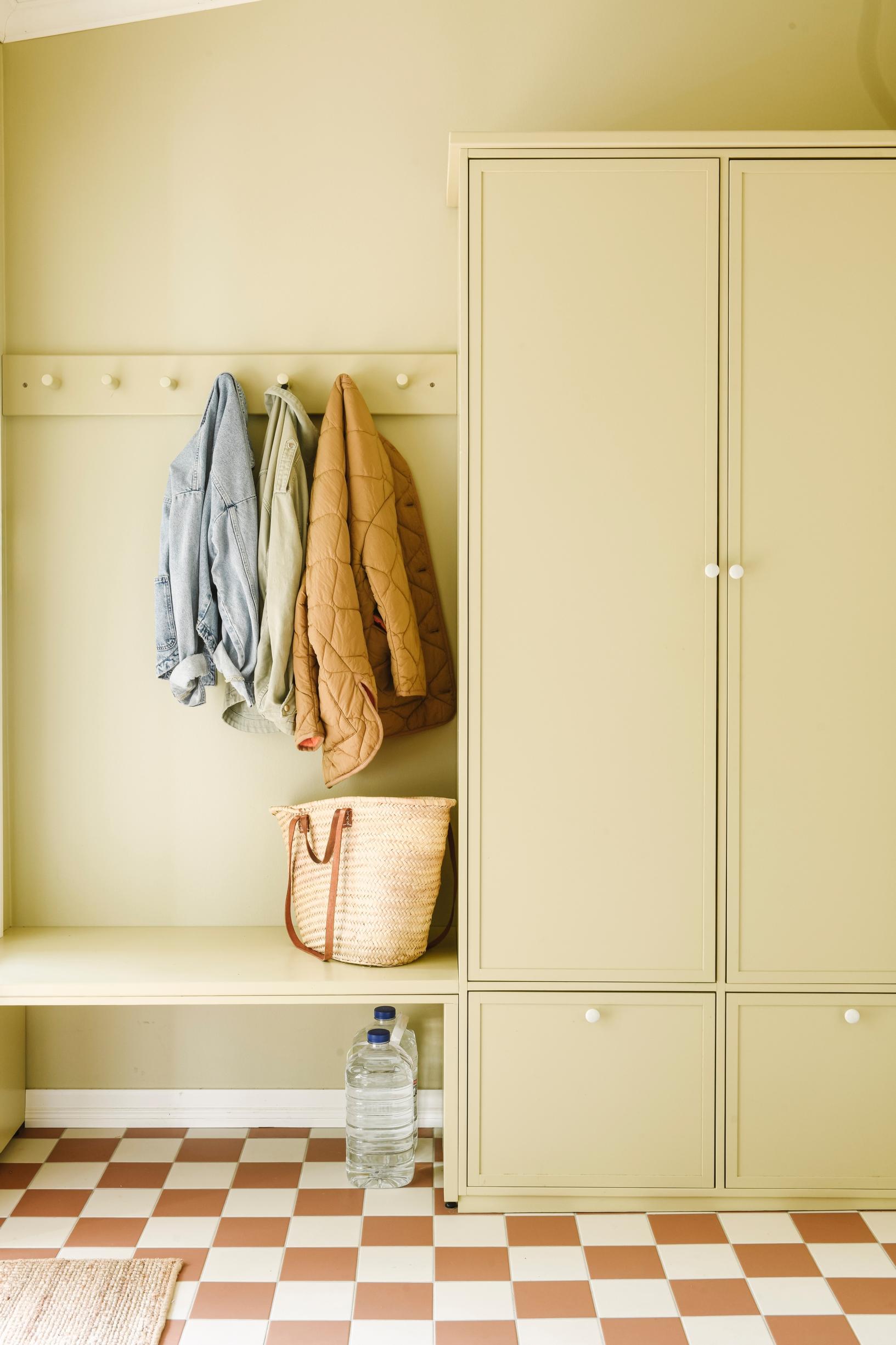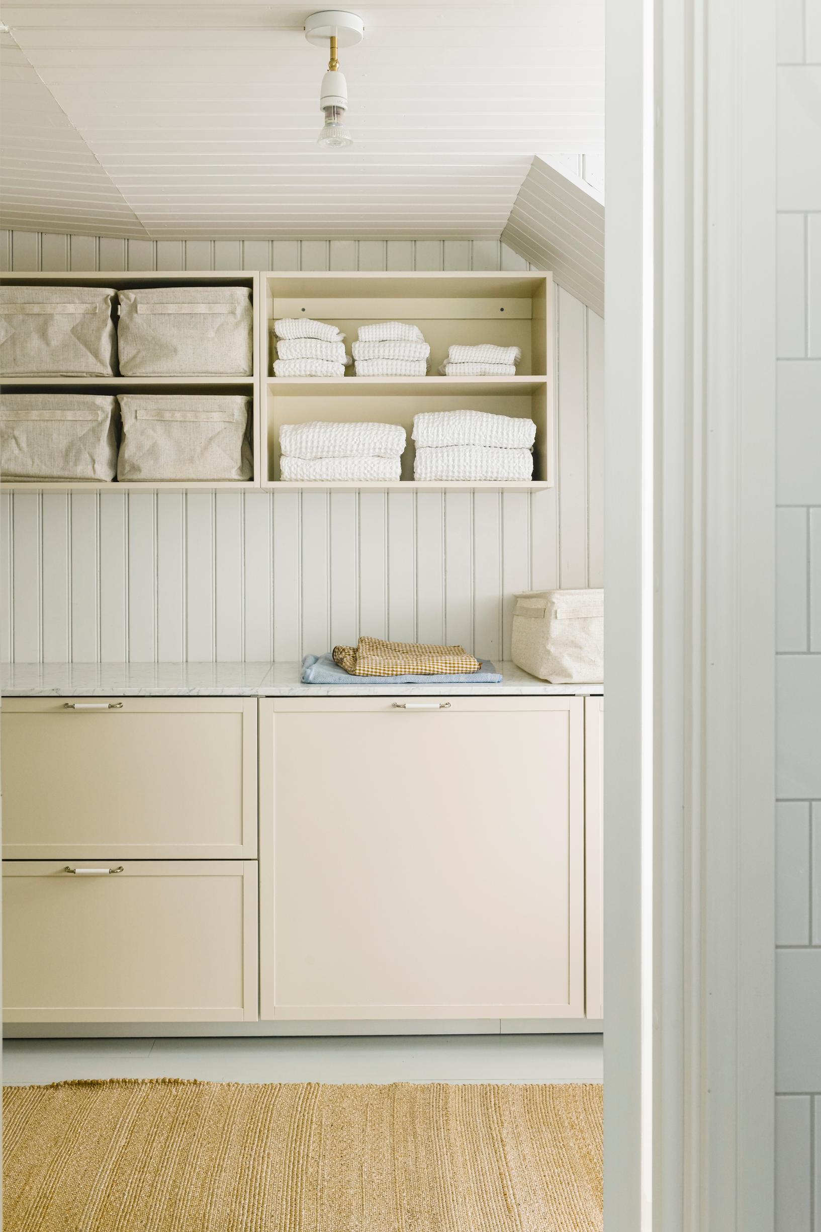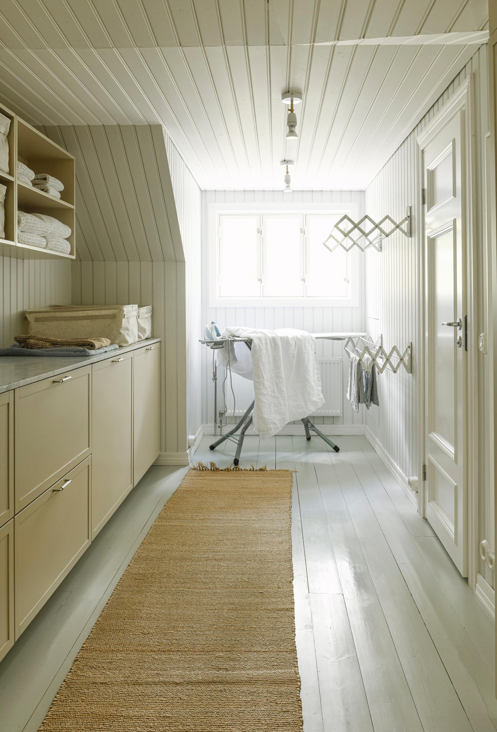 Kodinhoitotila on ihanteellisesti samassa kerroksessa kuin makuuhuoneet. Pyykkirumban pyöritys sujuu, kun sekä vaatesäilytys että -huolto ovat samassa tilassa.