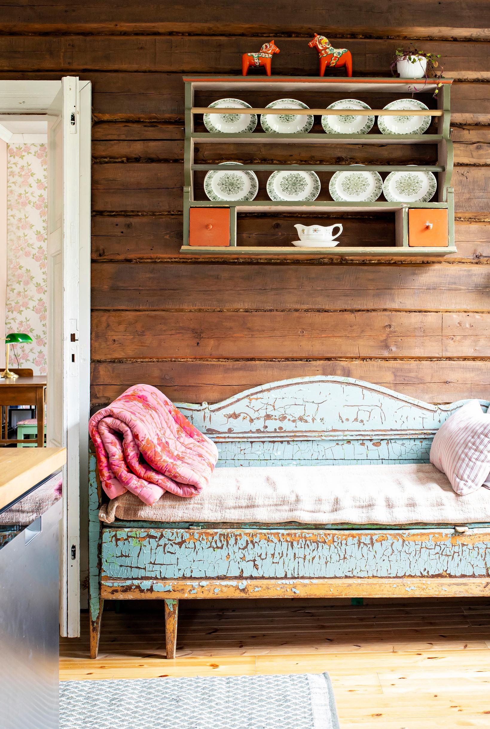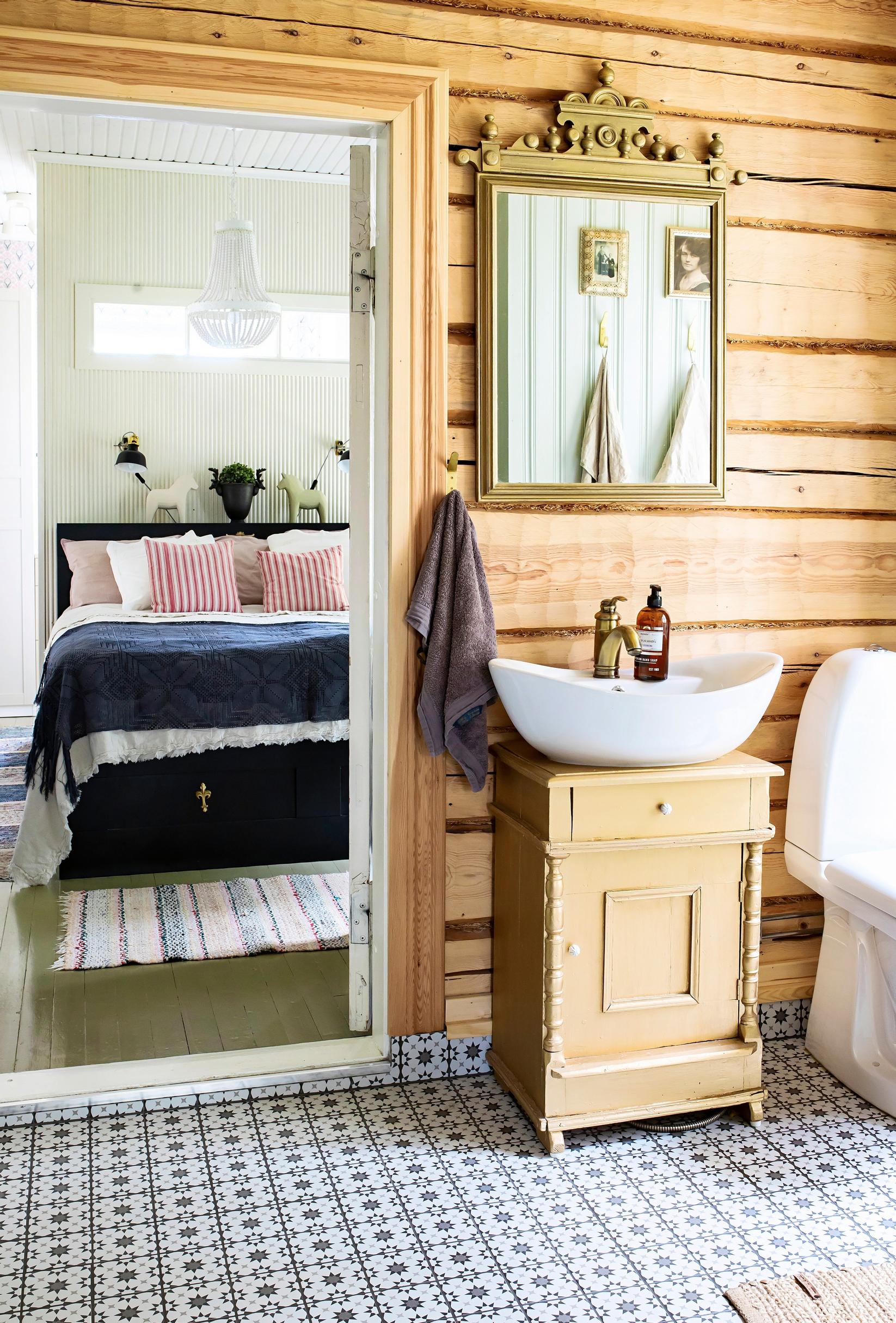 – Yläkertaan johtavat portaat on rakennettu esimerkiksi vanhasta viljalaarista ja kylpyhuoneen tasot lattialankuista, Jenni täsmentää.