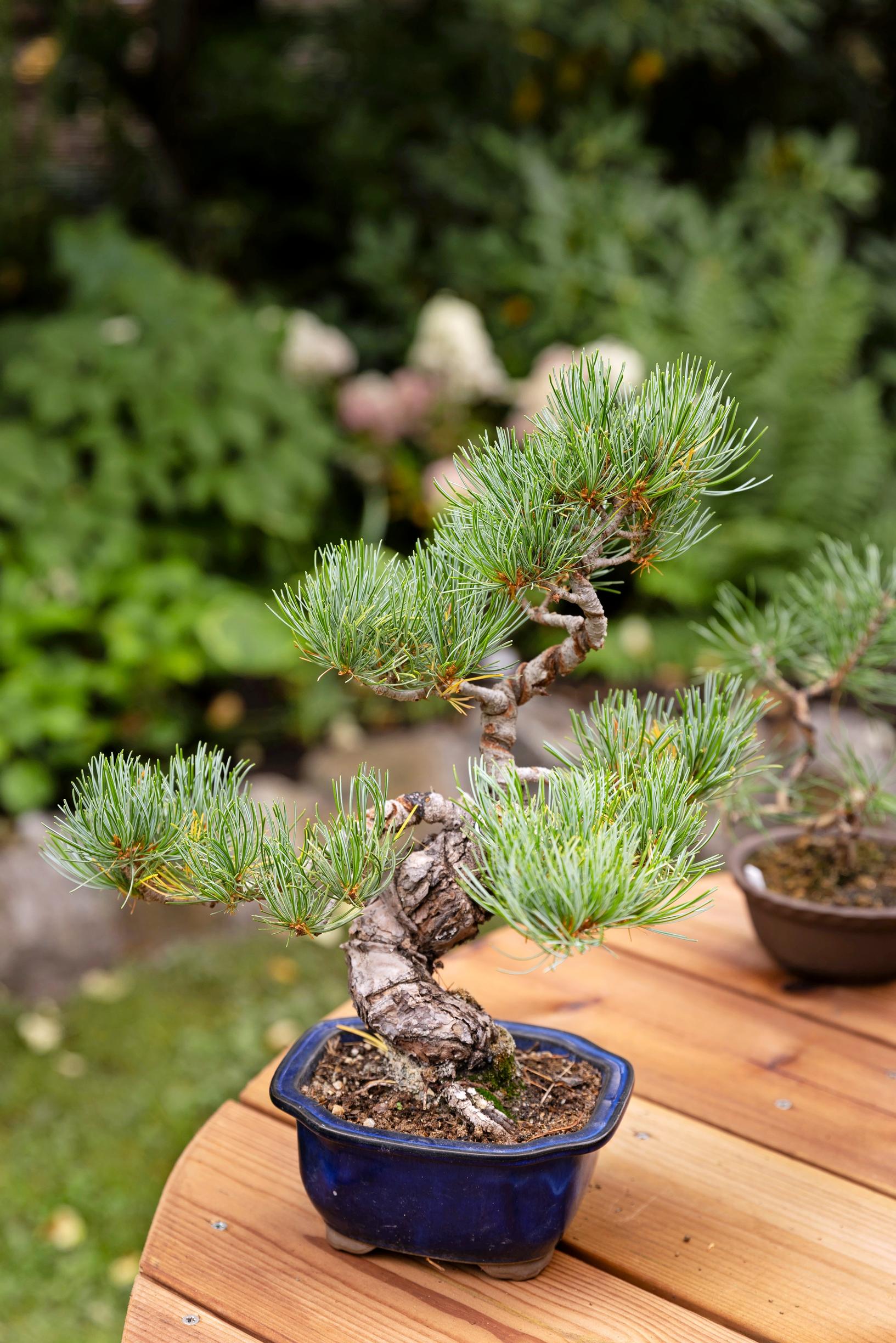 Sen verran malttamaton olen, että kaikkia bonsaita en kasvata alusta asti. Olen hankkinut esimerkiksi neidonmäntyjä ja japaninvaahteroita, jotka ovat käytännössä valmiita ja kaipaavat vain työstämistä, että pysyvät mallissaan. Niistä on iloa heti.
