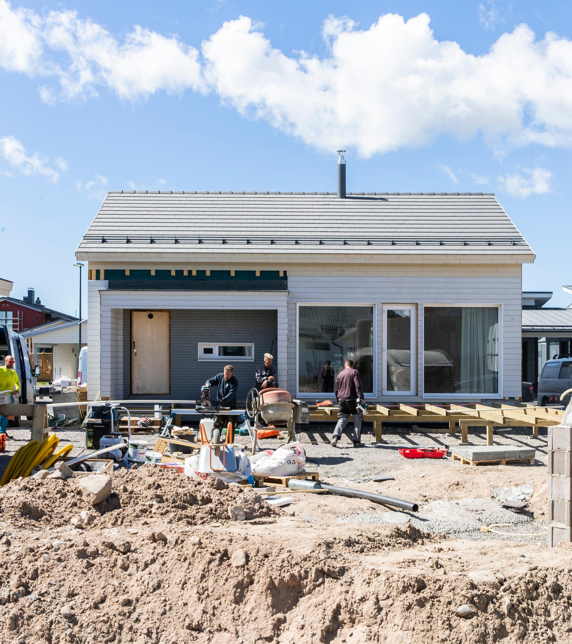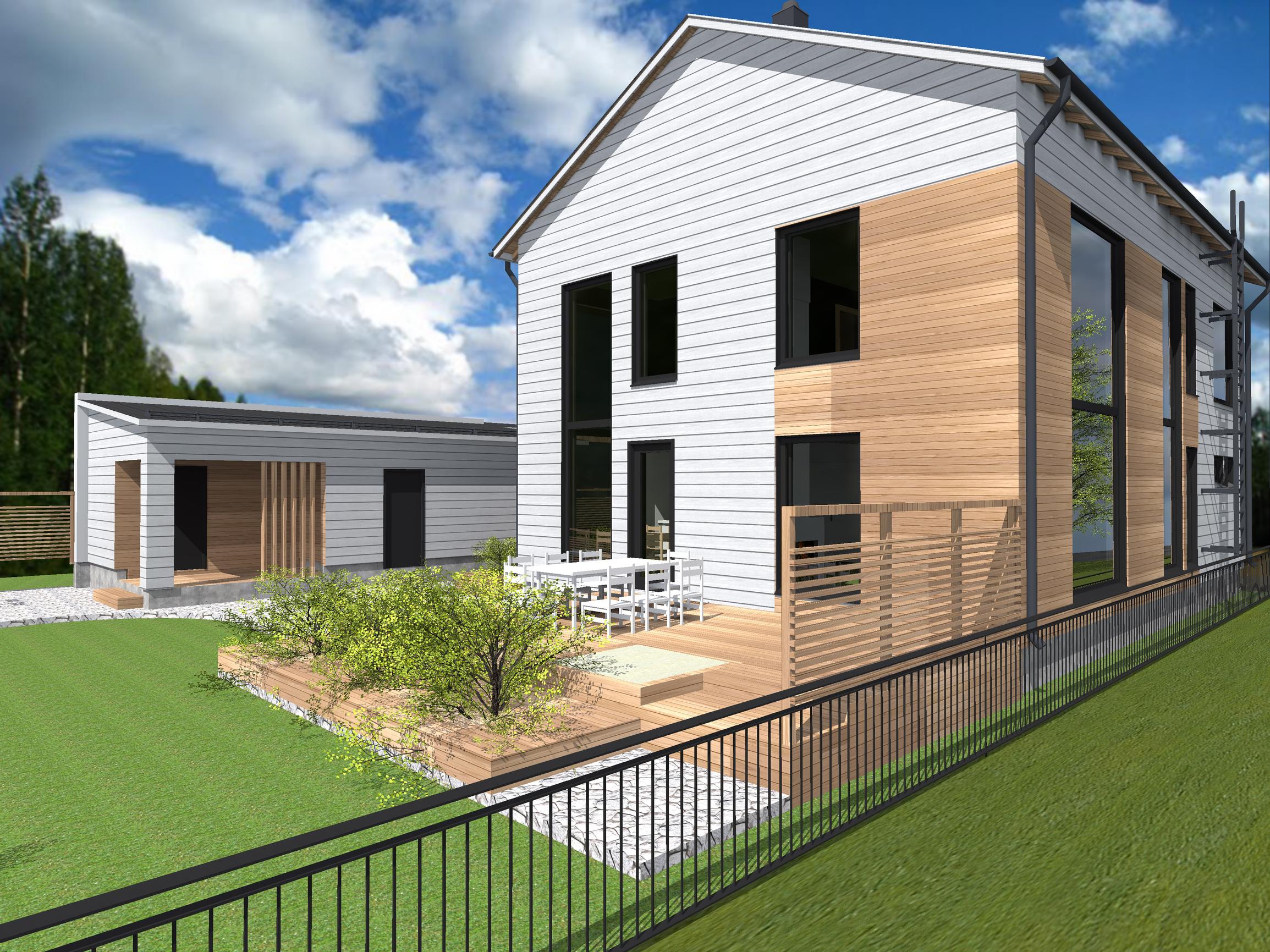 Erityistä: Selkeälinjainen talo, joka on suunniteltu erilaisten perheiden tarpeisiin mukautuvaksi.