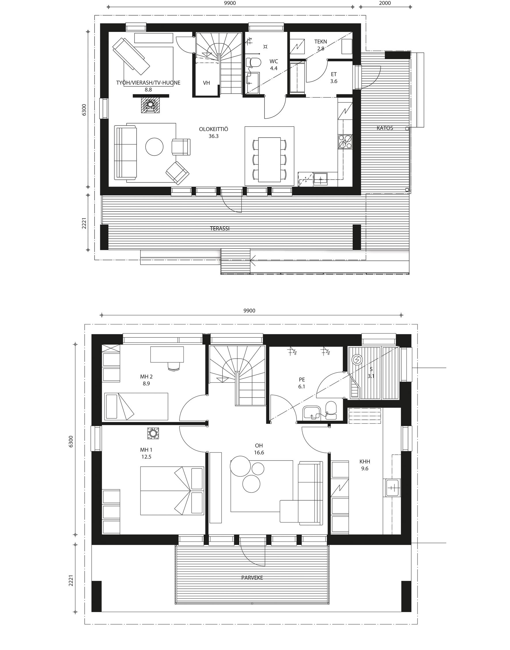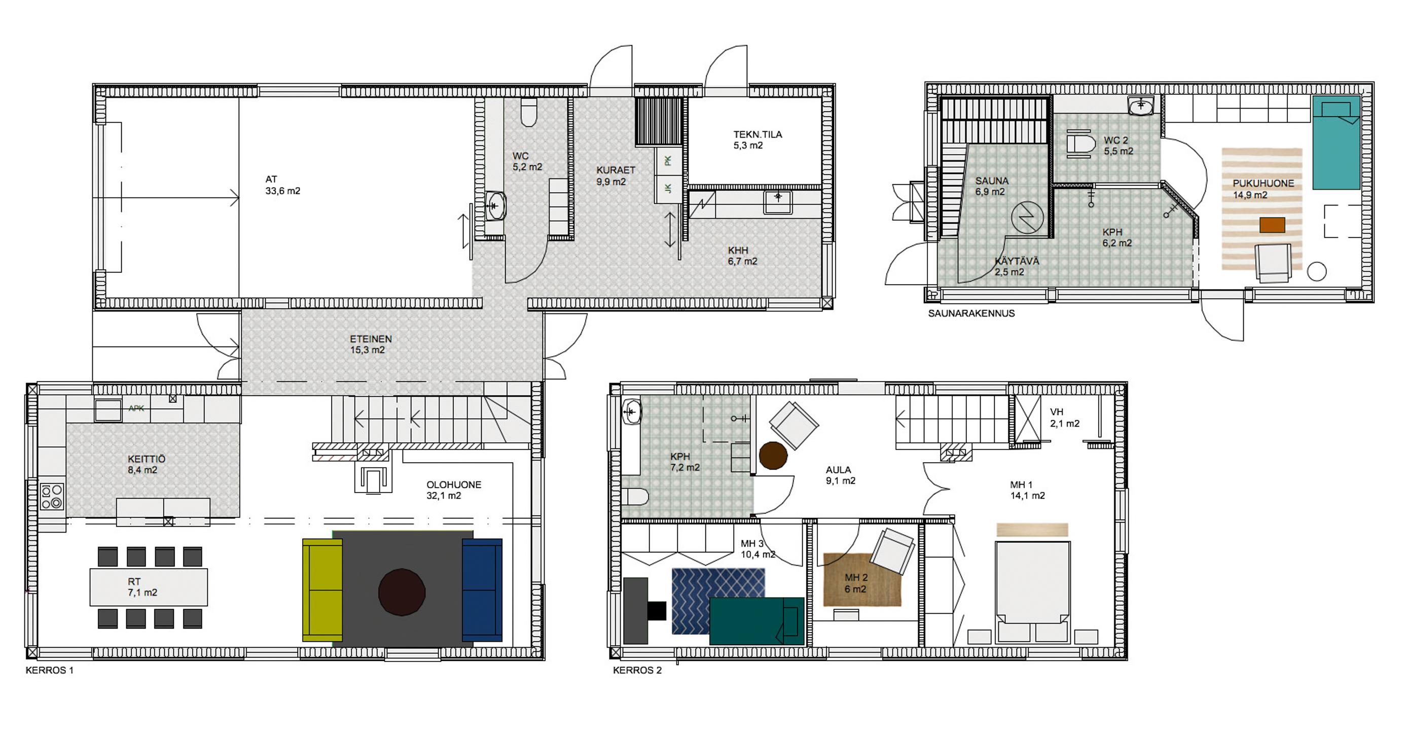 Porin asuntomessukohteiden 3–15 joukossa on niin erilaisia pientaloja kuin seitsemän asunnon rivitalokin. Täältä löydät Porin asuntomessujen kohteet 3–15 sekä talojen havainnekuvat, pohjapiirrokset ja tekniset tiedot.