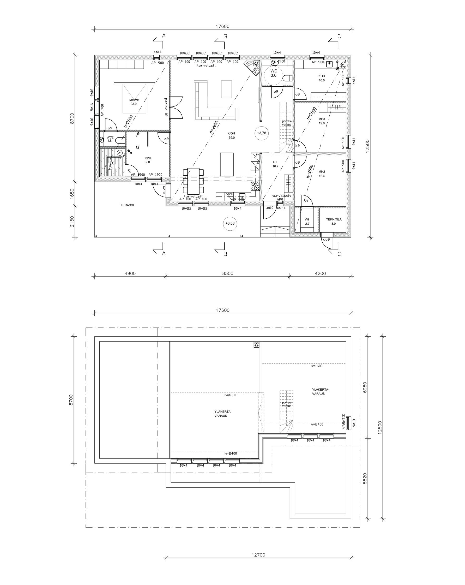 Lämmitysjärjestelmä: vesikiertoinen lattialämmitys, ilmalämpöpumppu
