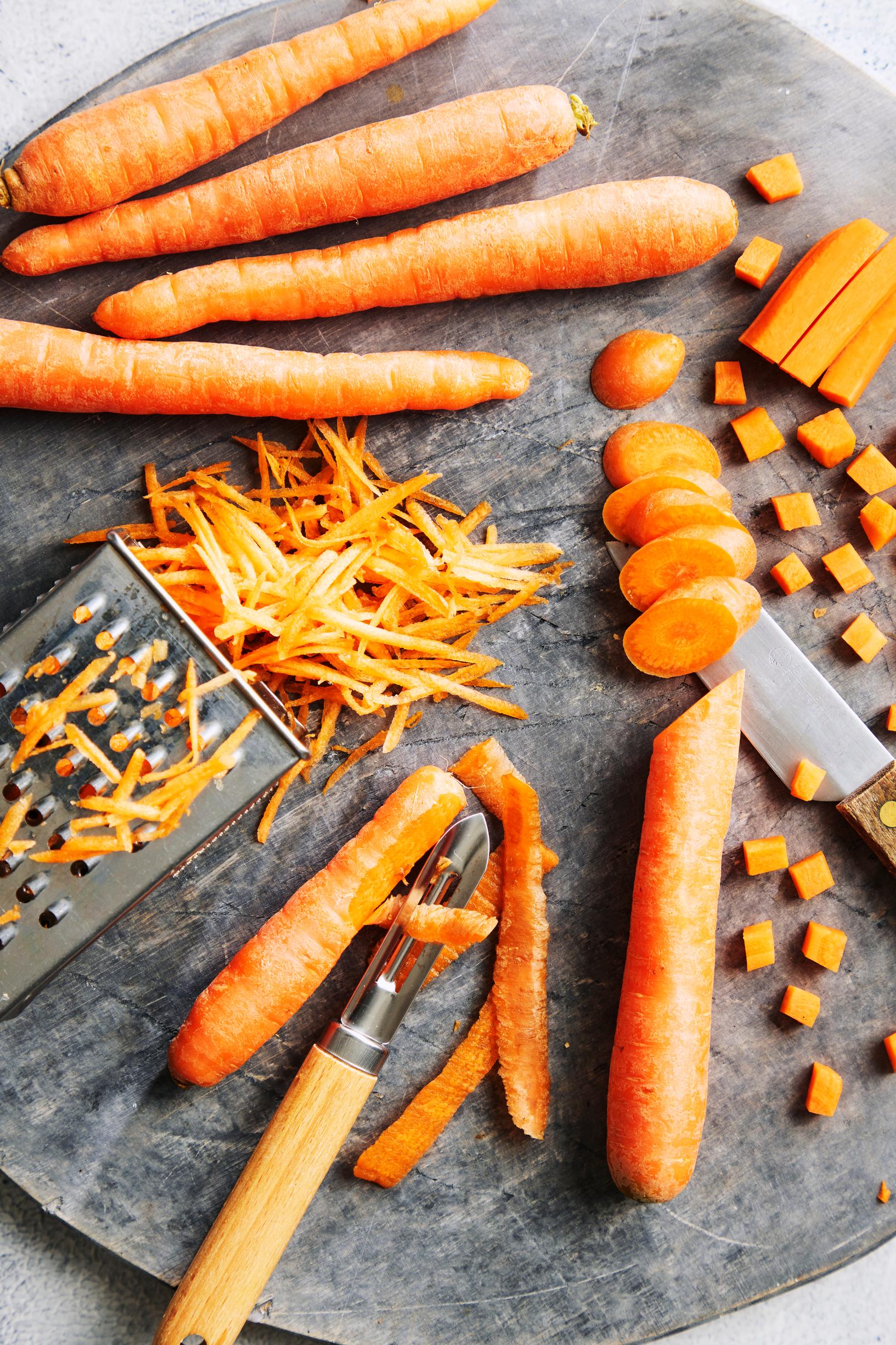 Vanha kunnon raastinrauta on toimiva peli, mutta jos porkkanoista haluaa kaiken irti, kannattaa panostaa muutamaan välineeseen. Hyvä ja terävä veitsi on kaiken a ja o. Liikkuvateräisellä kuorimaveitsellä saa suikaloitua porkkanasta ohuita siivuja suoraan salaattiin. Kuorimaveisten näköisessä julienne-kuorijassa on sahalaitaisia teriä, joilla siivuttaa porkkanan helposti tikkumaisiksi suikaleiksi.