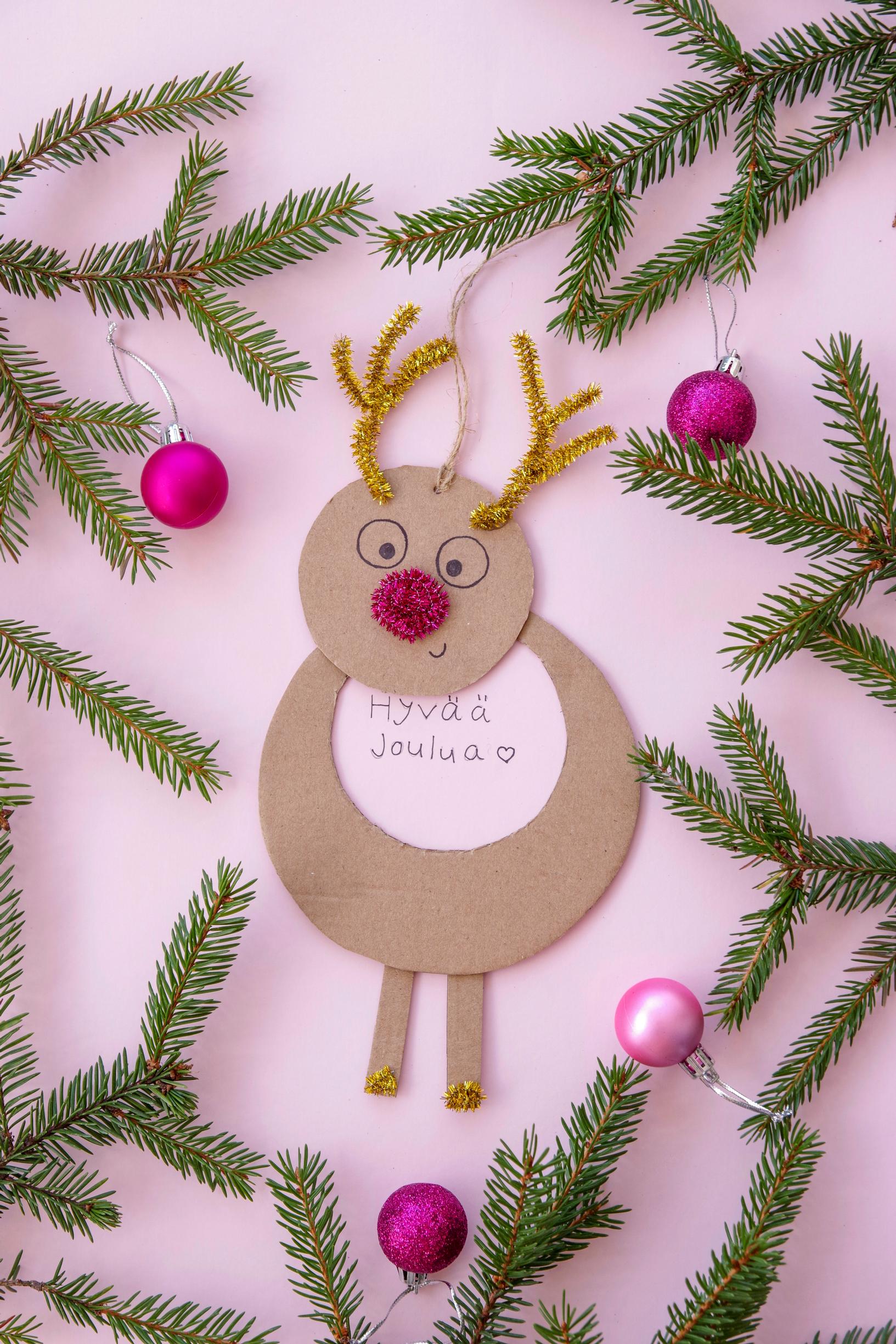 Iloinen porojoulukortti on samalla kuusenkoriste – katso helppo ohje ja lähetä Petteri matkaan