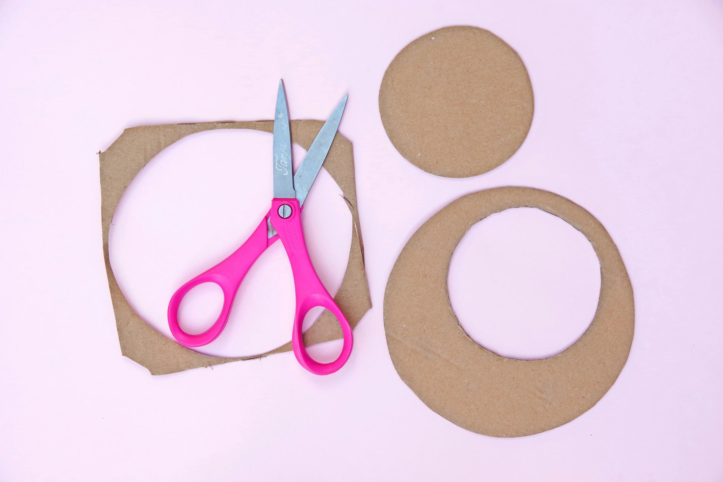 1. Piirrä pahville ympyrä, jonka halkaisija on noin 15 cm. Piirrä sen sisälle lähelle yläreunaa pienempi, noin 8 cm:n ympyrä. Käytä ympyröiden piirtämisessä apuna esimerkiksi mukeja.