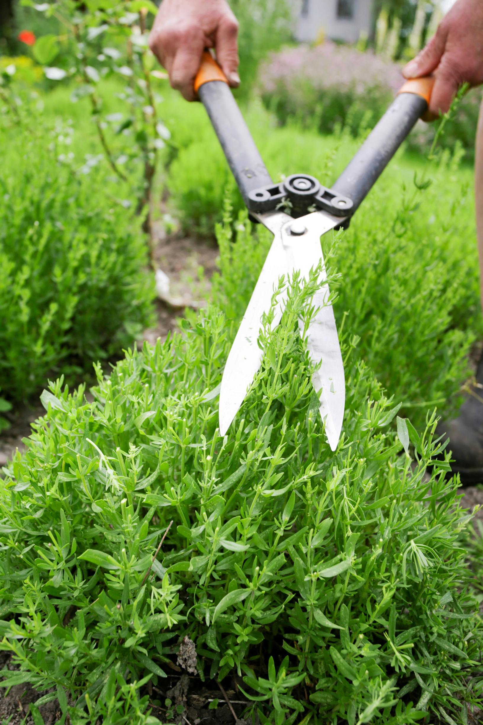 Väljään jonoon istutetuista iisopin tai aaprotin taimista syntyy veikeä vihreiden kuulien jono, kun muotoilet jokaisen taimen pyöreäksi palloksi.