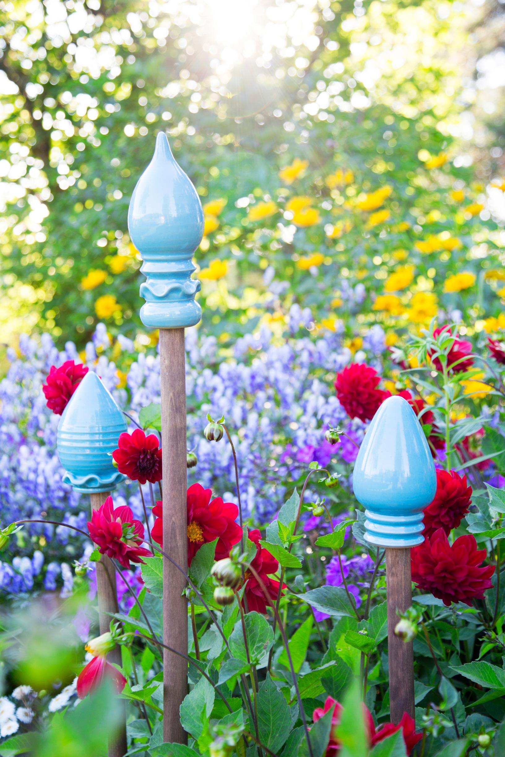 Kasvien lisäksi potageria koristavat harkitusti asetellut katseenvangitsijat, kuten värikkäät koristenupit, patsaat tai lintujen juoma-altaat.