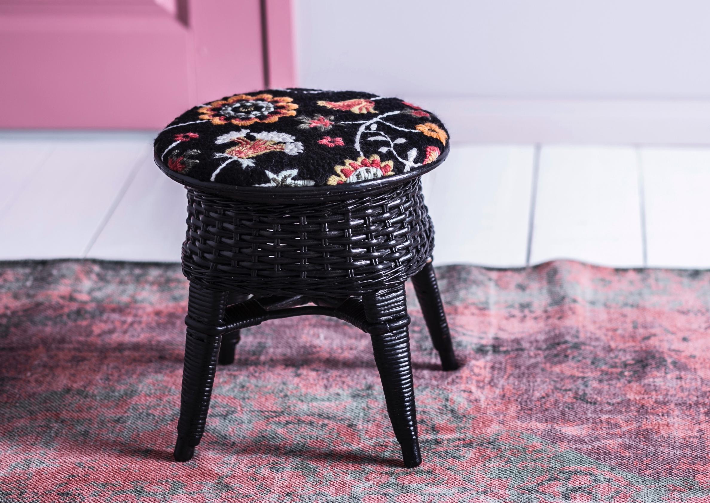 Printtikangasta ja laakapistoja – verhoile rottinkijakkara uuteen kuosiin