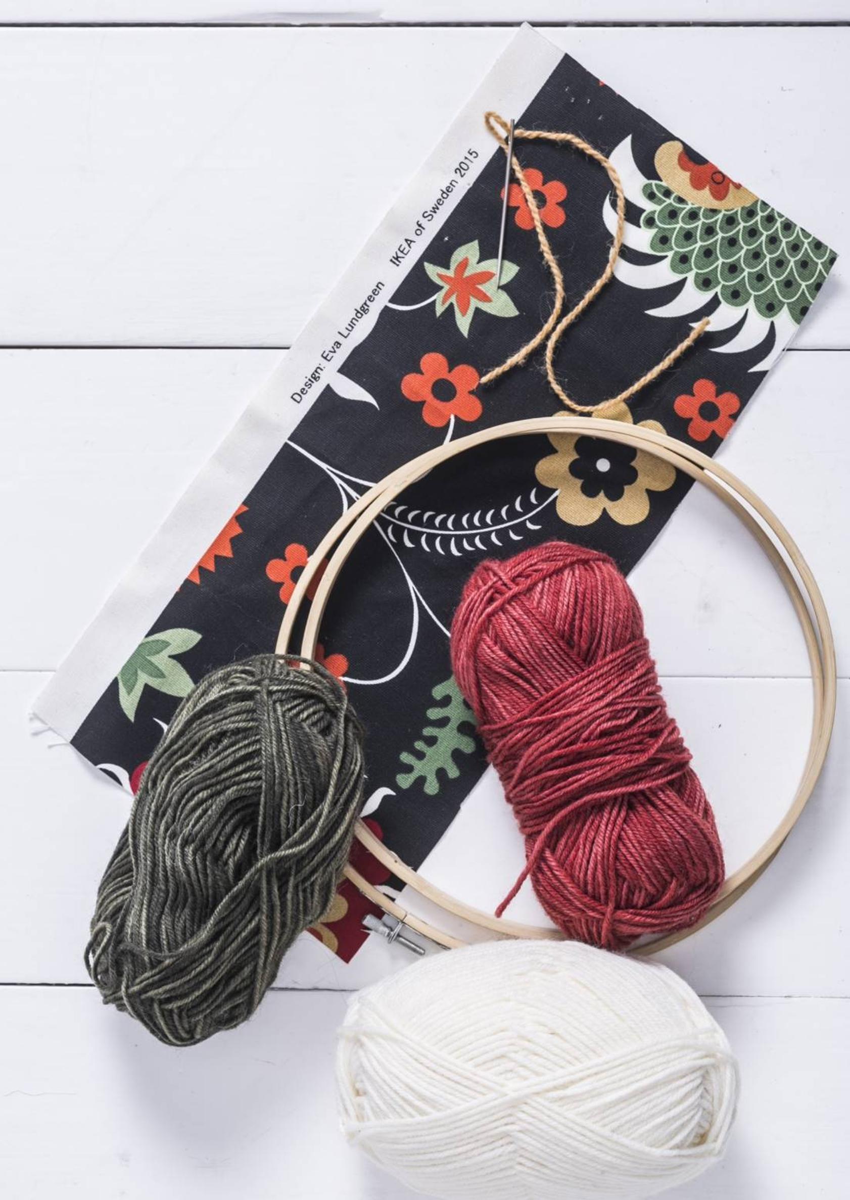 - kuviollinen kangas (mallityössä on Ikean Rosenrips-kangas)