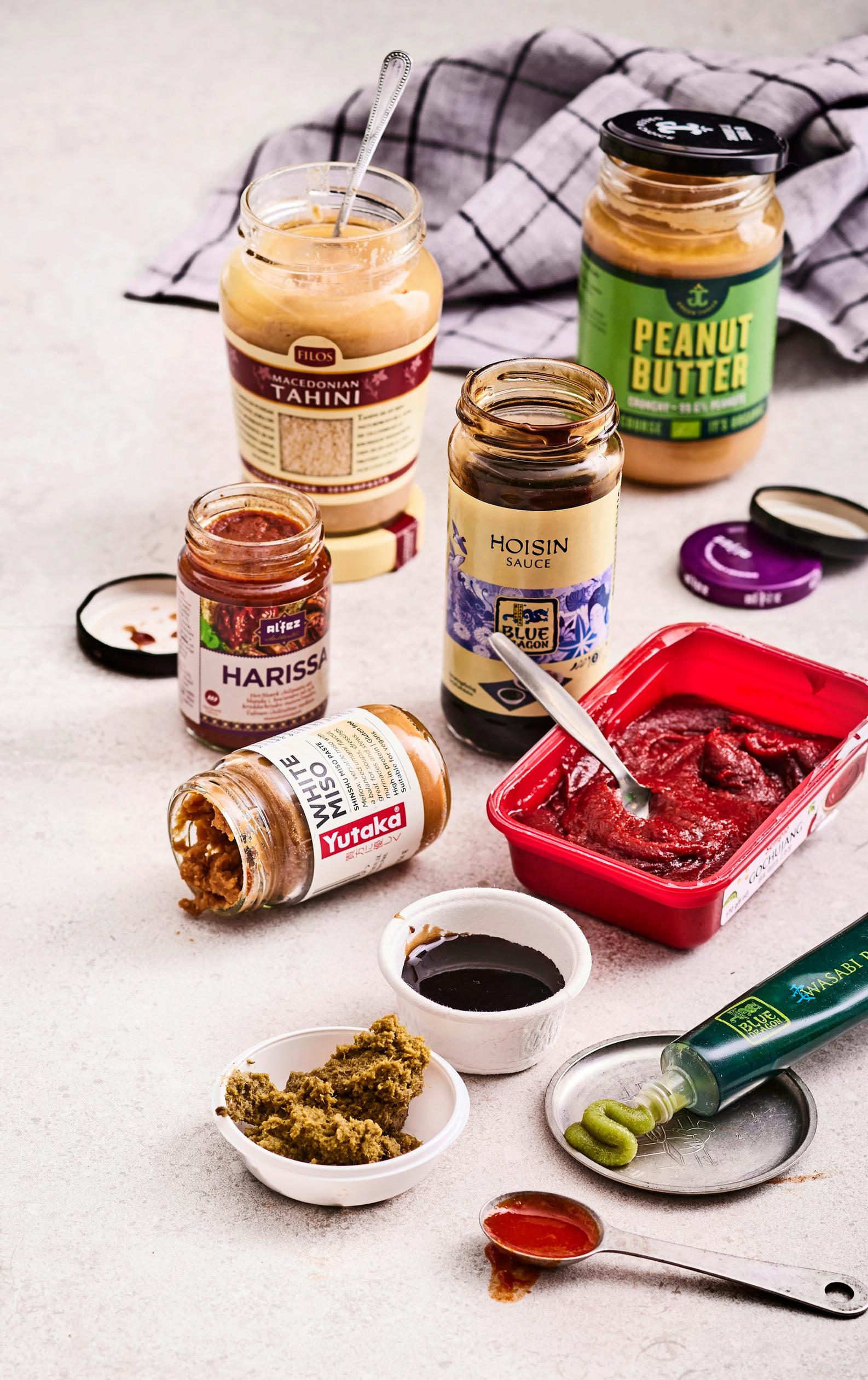 Purkinpohjat käyttöön! Kaiva jääkaappiin unohtuneet misot, tahinit ja muut tahnanjämät esiin – poimi herkulliset ideat