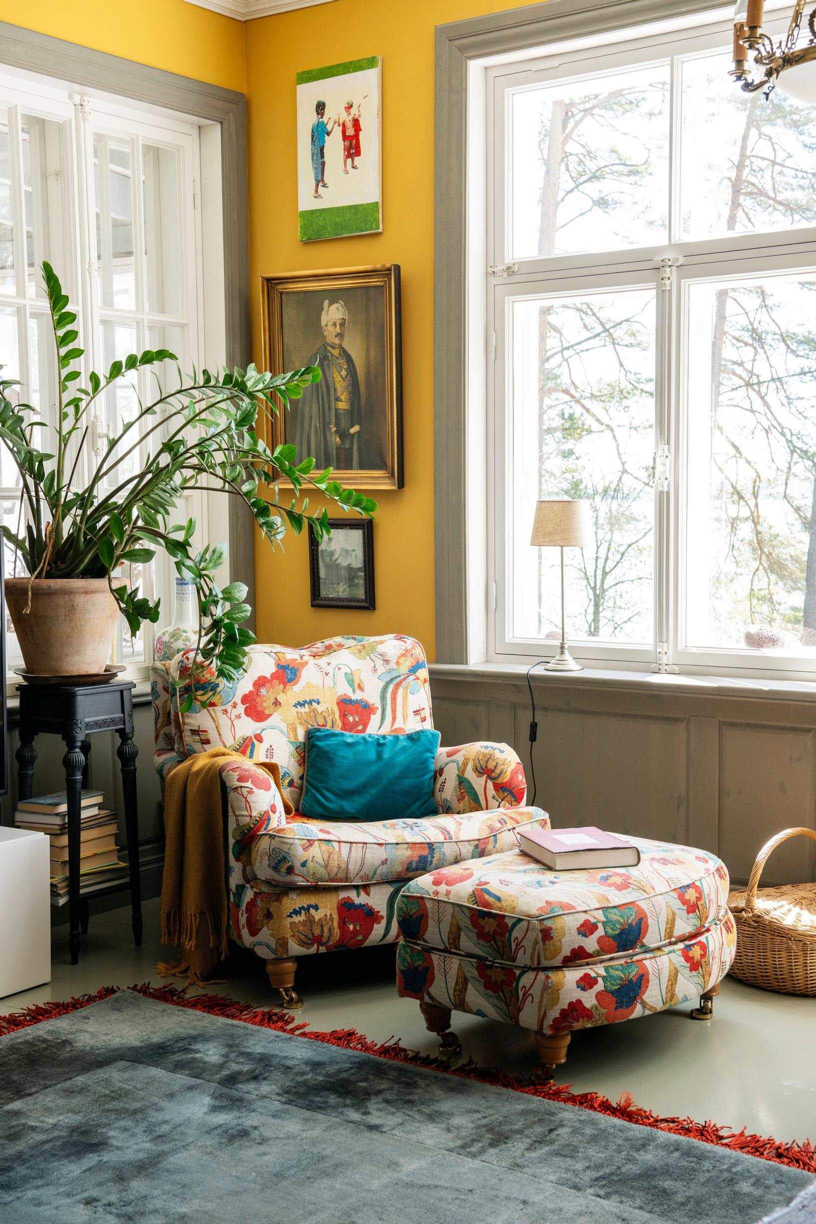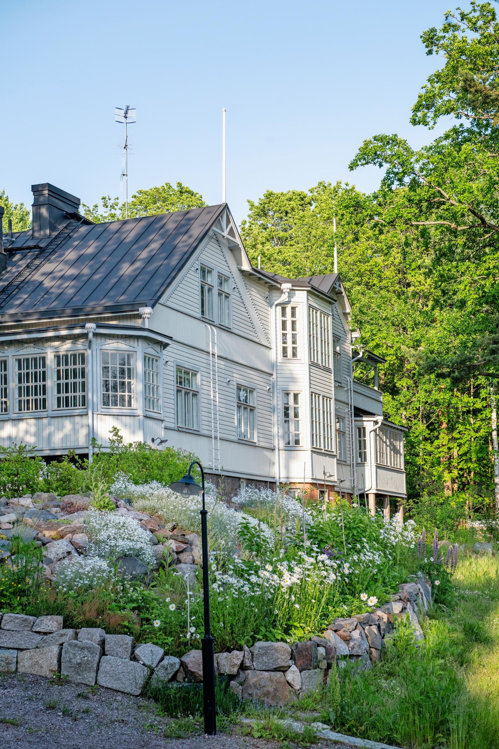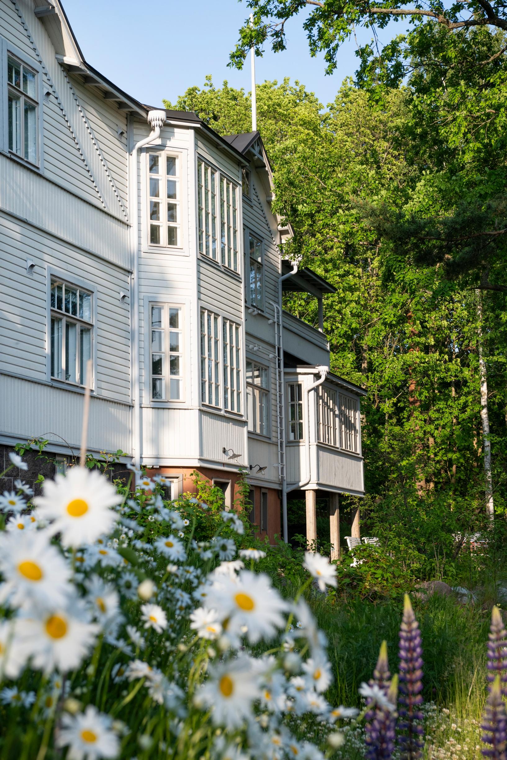 ”Villa Furunäs oli kuilun partaalla, mutta tässä oli uskomatonta charmia, perheemme kaipaamaa lisätilaa ja loistava sijainti.” Vanhoja taloja pelastava perhe loi kotoisan ja värikkään kodin kovia kokeneeseen puuhuvilaan meren äärellä. Siellä ovat asuneet niin säveltäjä Yrjö Kilpinen kuin Kirsti Paakkanen.