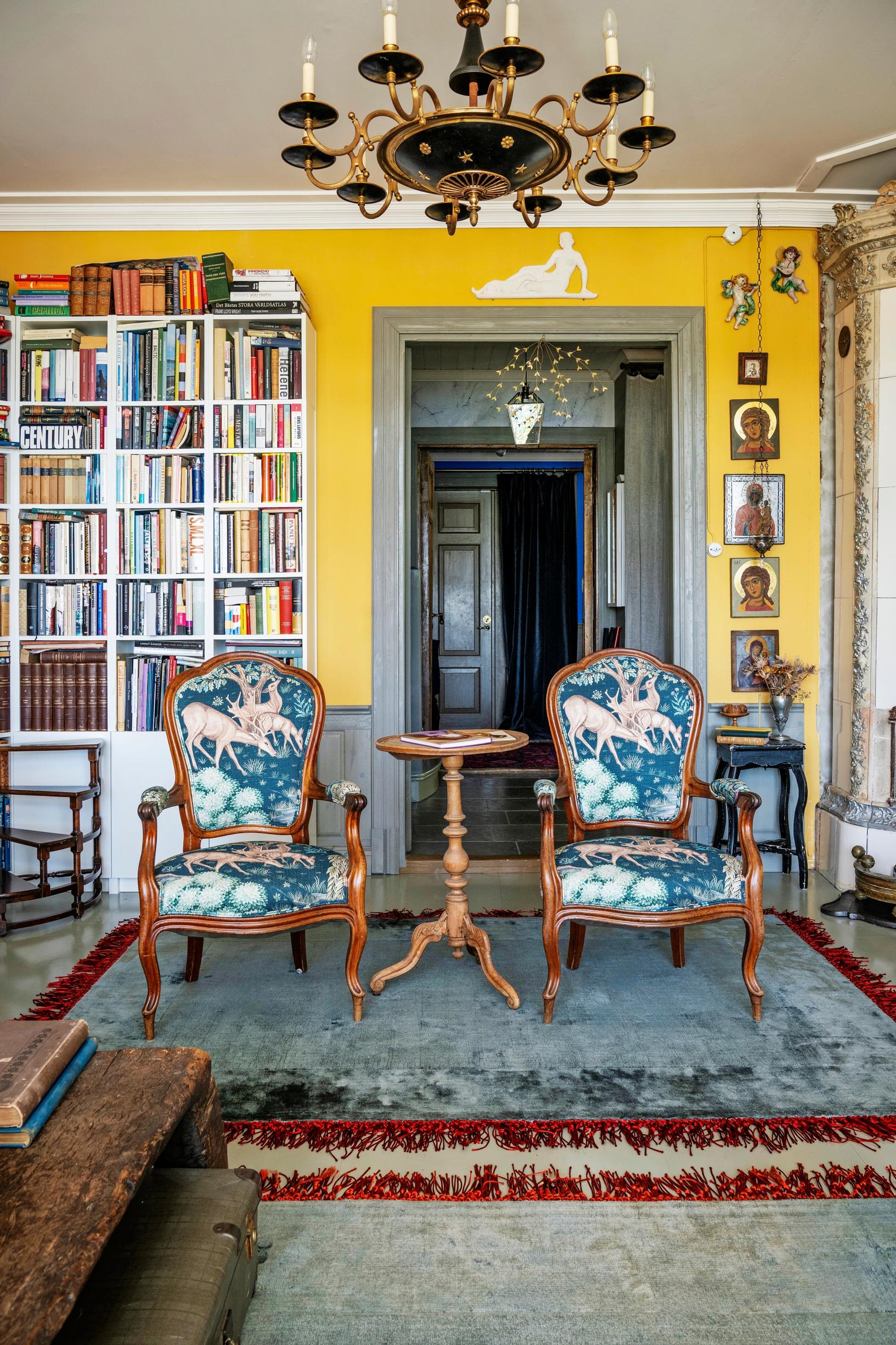 Sisustustyyli on runsas ja kerroksellinen: tauluja, kirjoja, koriste-esineitä ja tekstiilejä on kaikkialla. Katossa on useita näyttäviä kruunuja, kristalleilla tai ilman. Osan huonekaluista Johanna on maalannut uudelleen, osan hän on verhoiluttanut, ja osa saa näyttää juuri niin ikääntyneiltä kuin ne ovatkin.